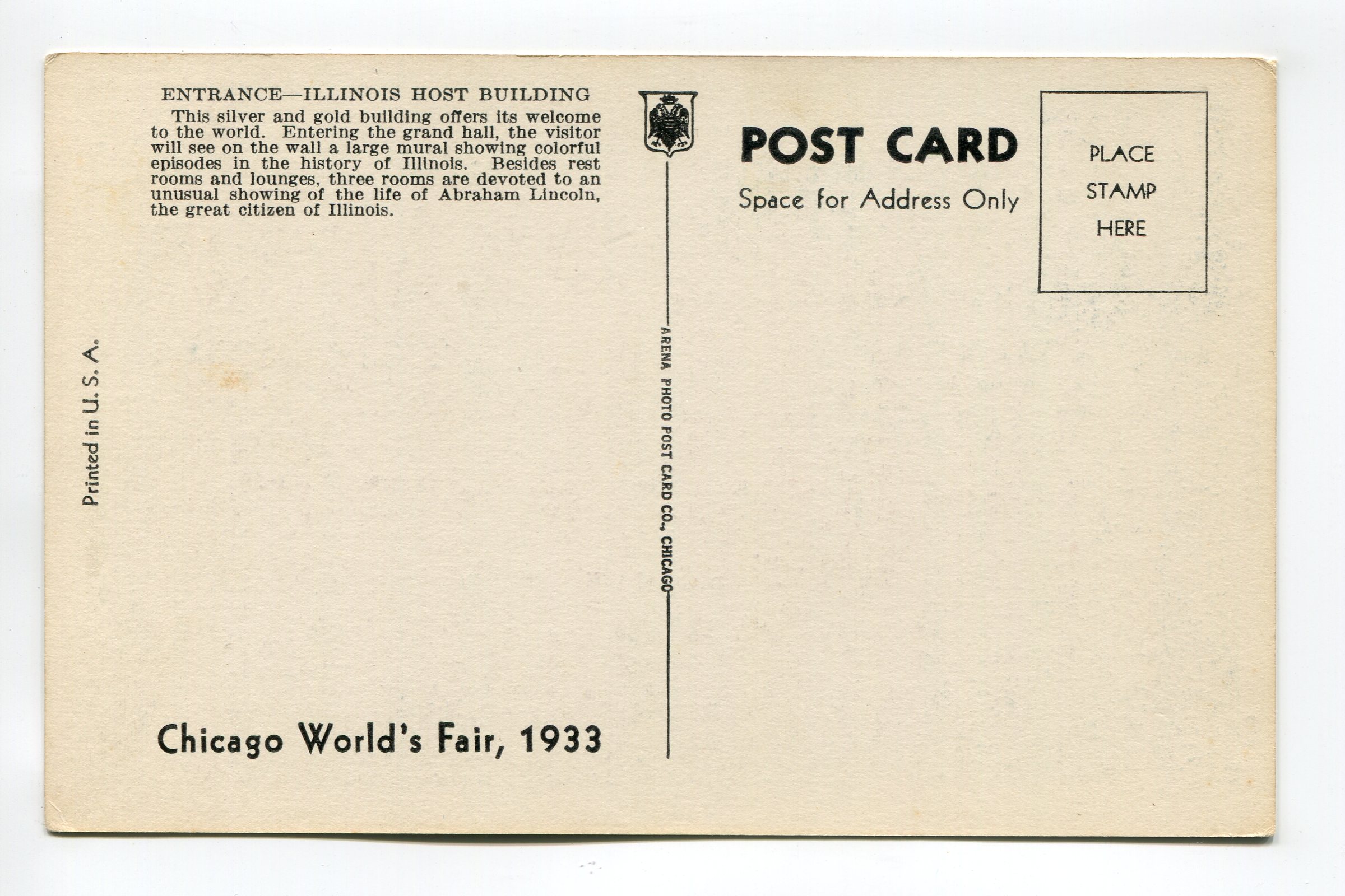 Entrance Illinois Host House Chicago Worlds Fair postcard