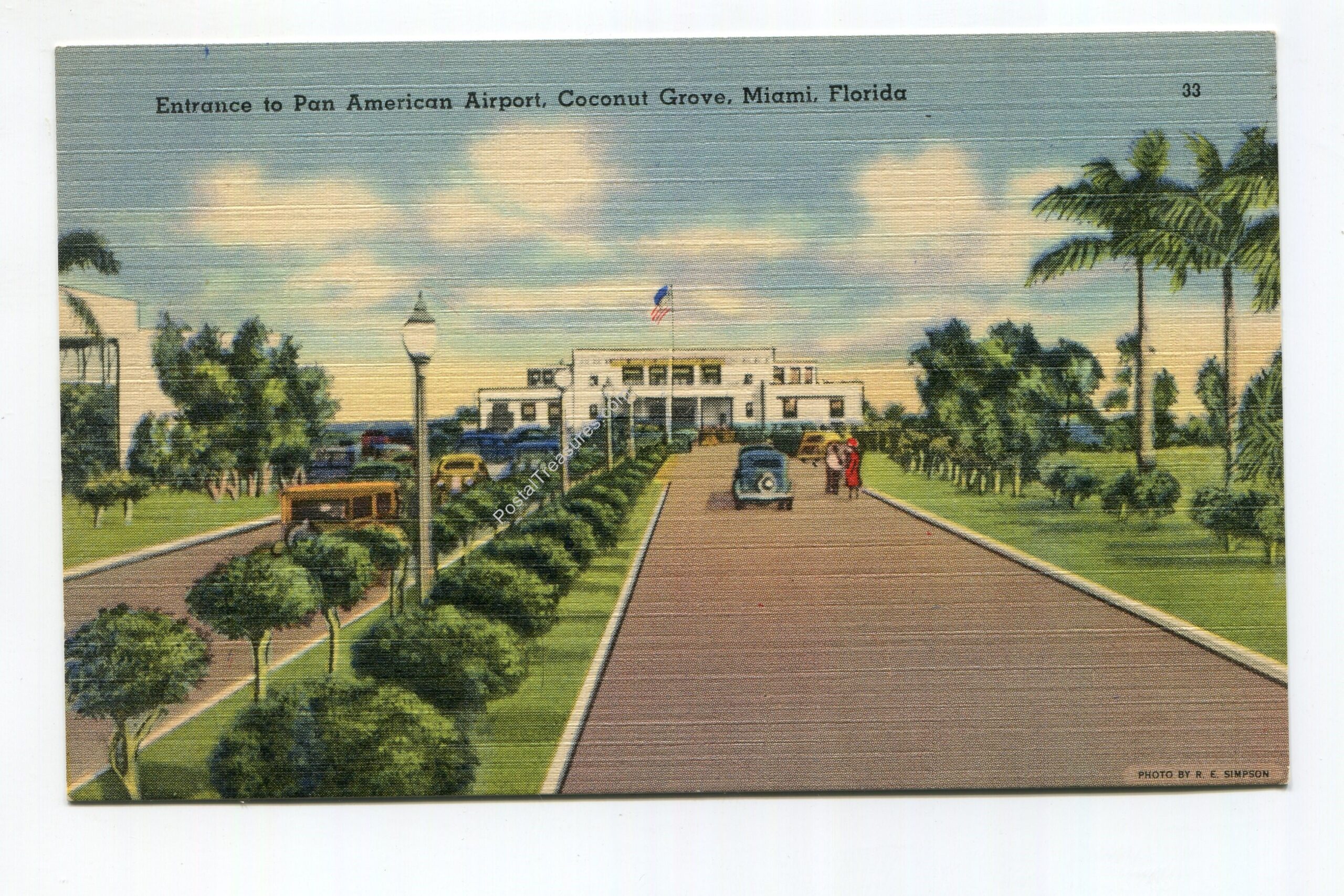 Entrance to Pan American Airport Coconut Grove Miami Florida postcard