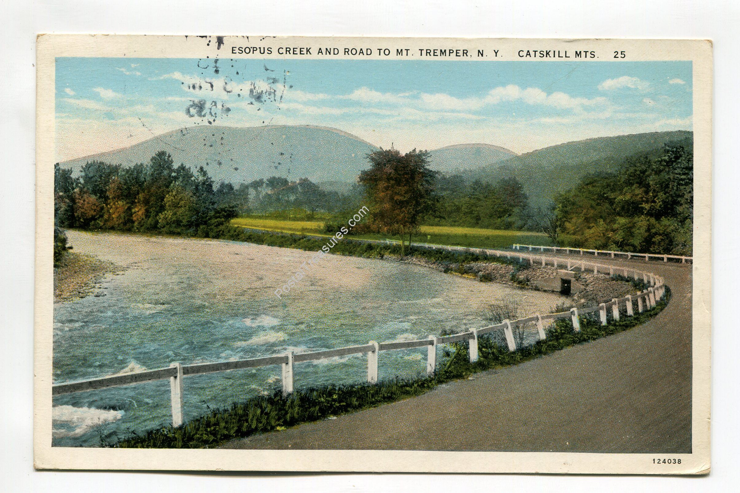 Esopus Creek and Road to Mt Tremper Catskill Mts New York postcard