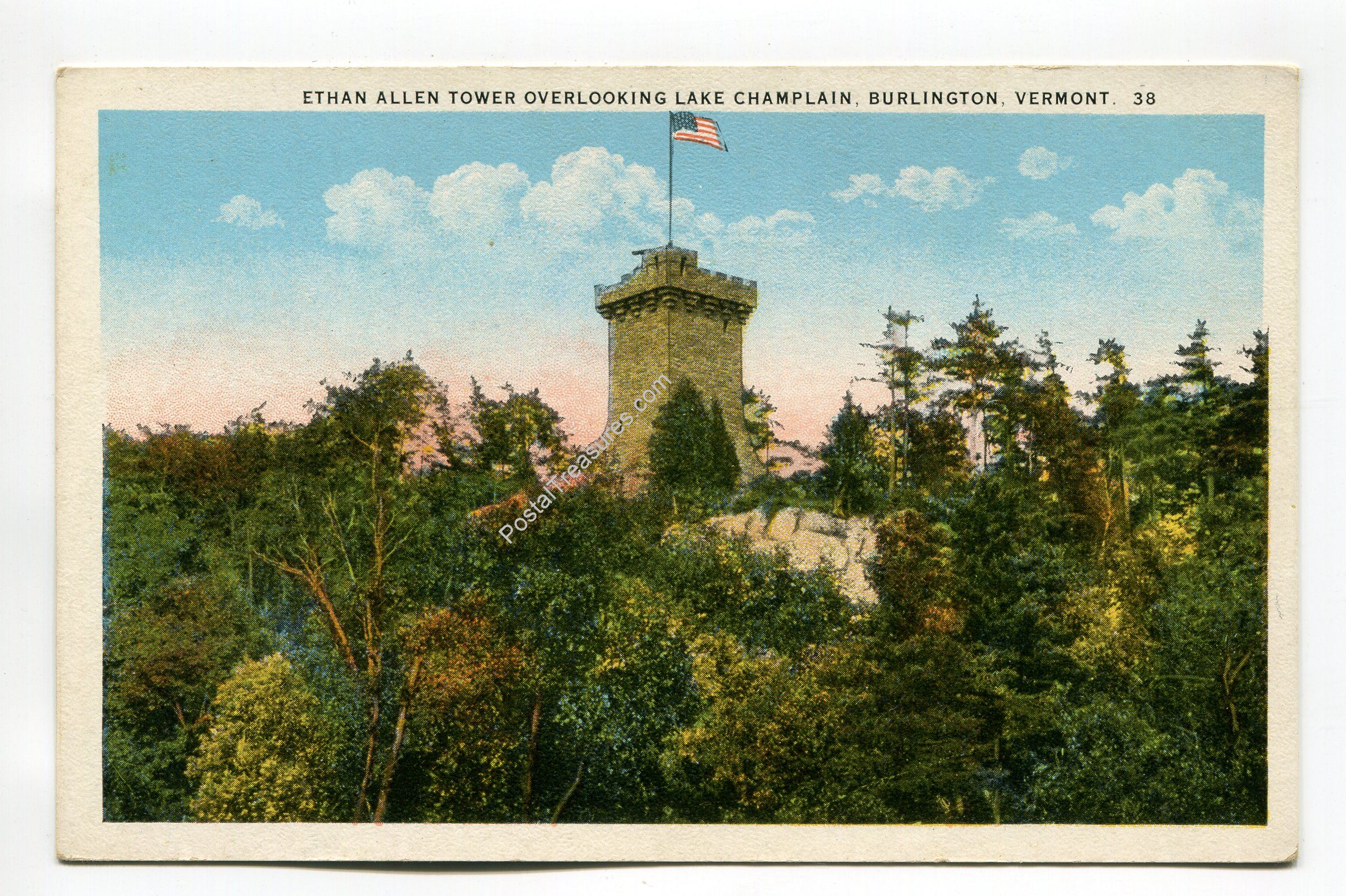 Ethan Allen Tower overlooking Lake Champlain Burlington Vermont postcard