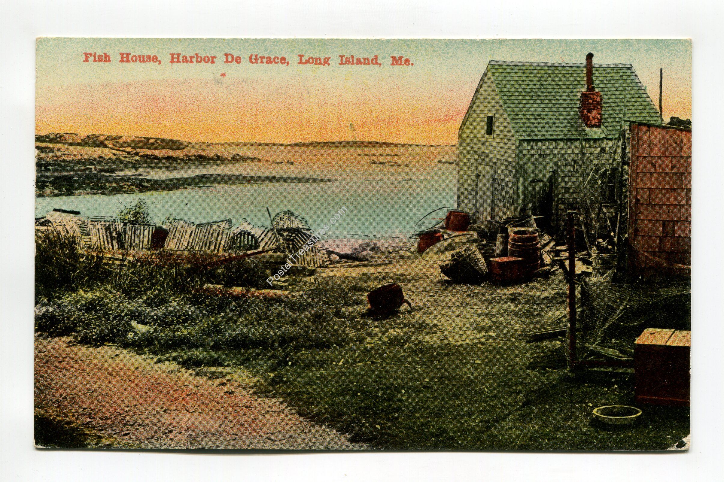 Fish House Harbor De Grace Long Island Maine postcard