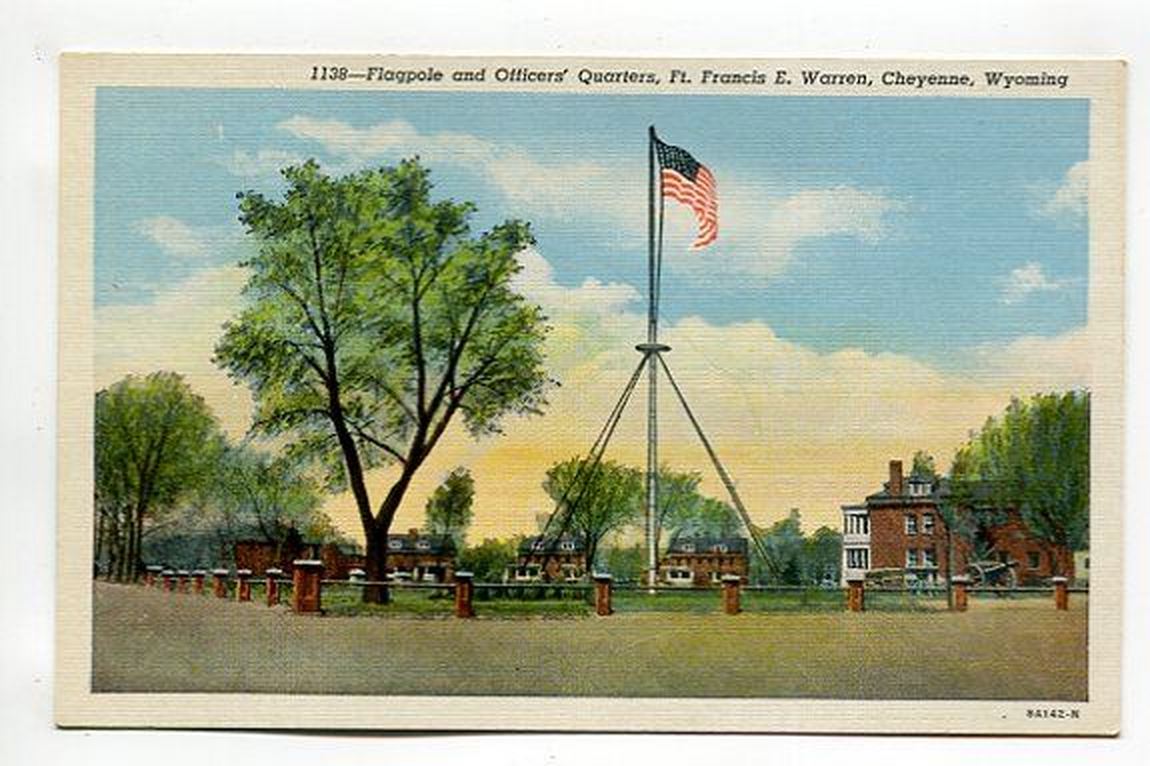 Flagpole and Officers Quarters Ft Francis E Warren Cheyenne Wyoming postcard