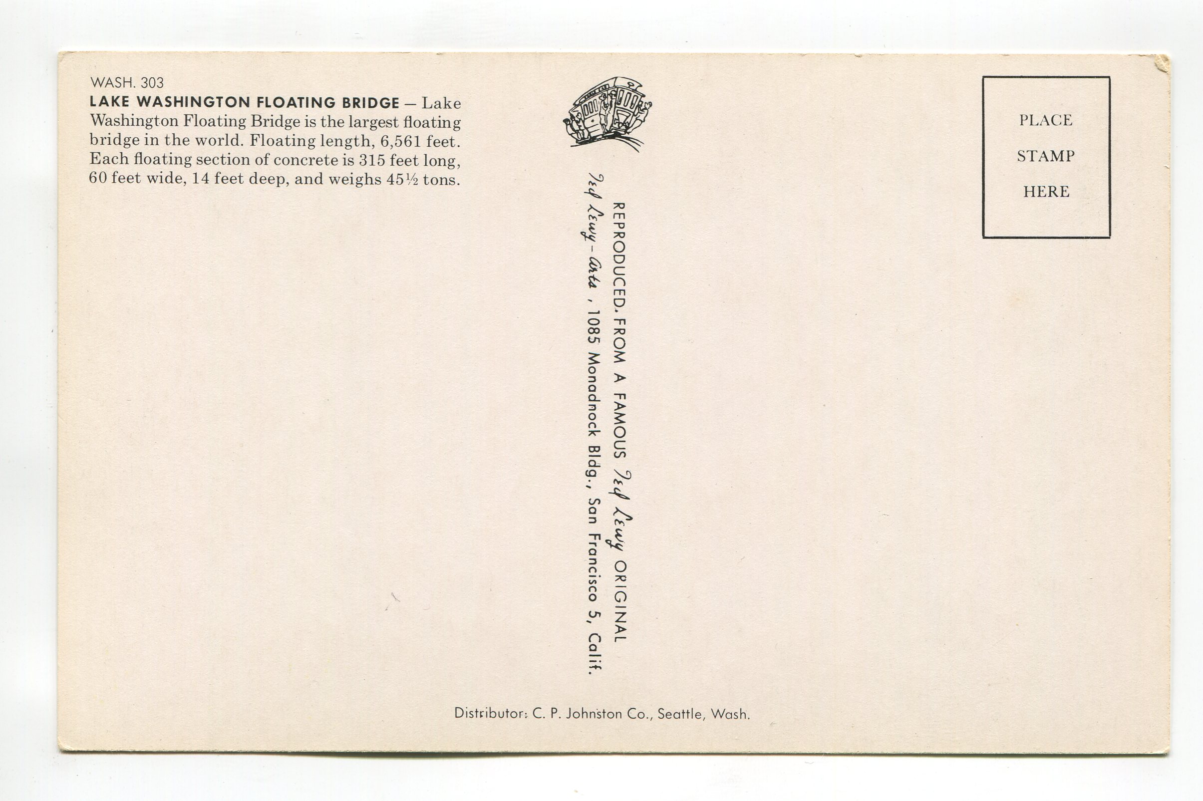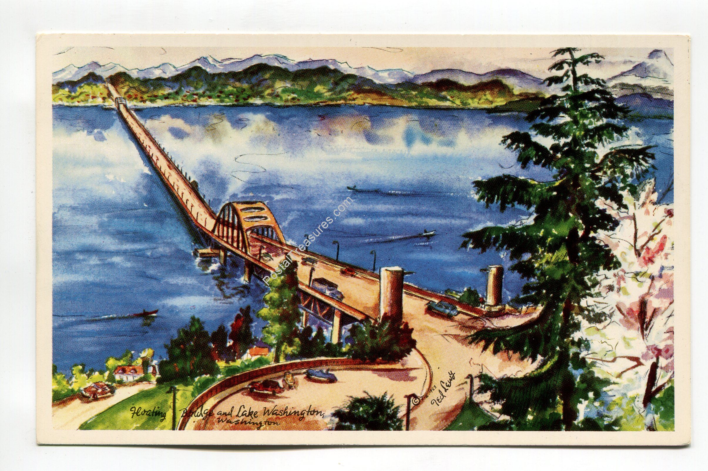 Floating Bridge and Lake Washington Washington postcard
