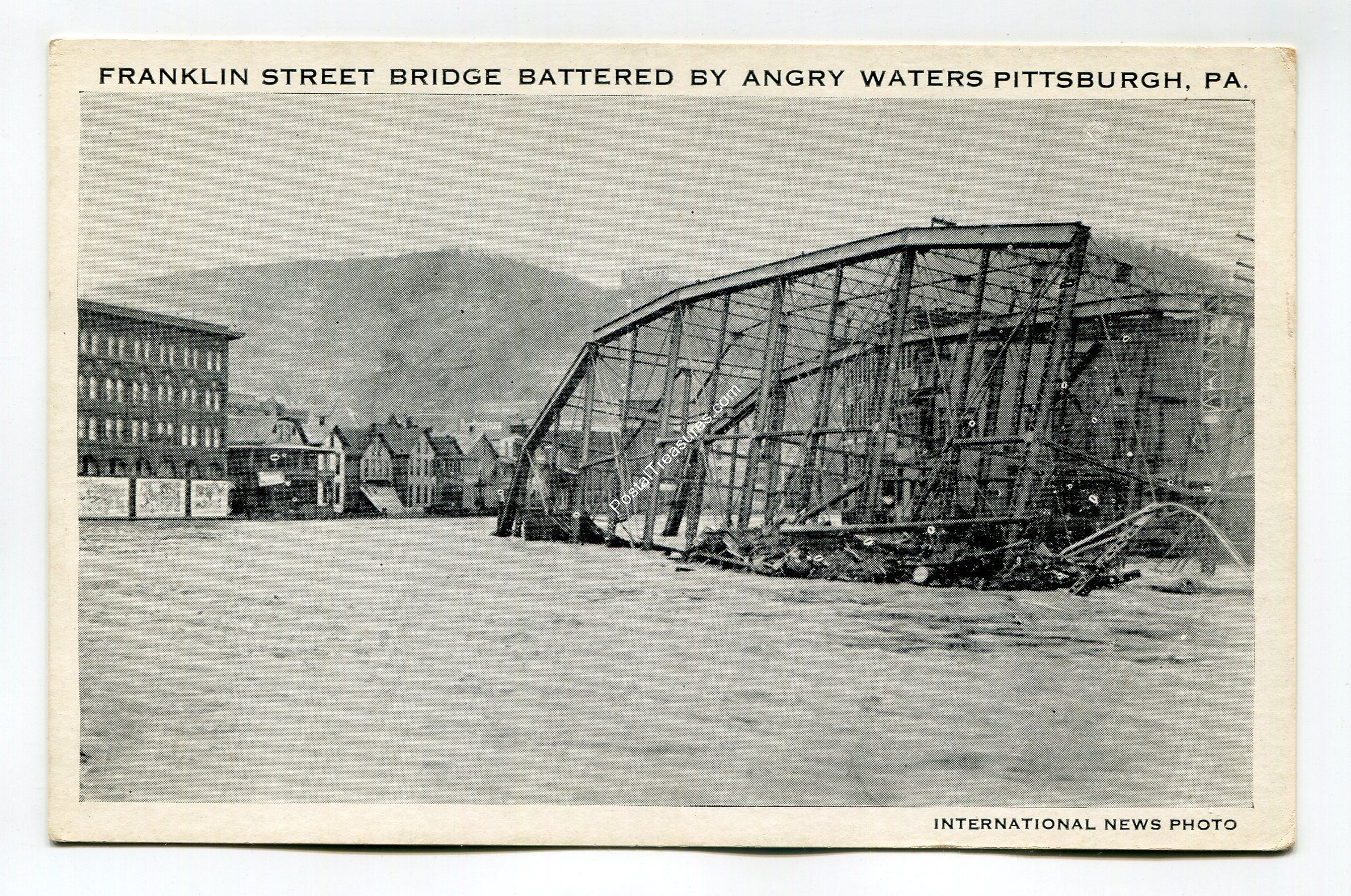 Franklin Street Bridge Battered by Angry Waters Pittsburgh Pennsylvania postcard