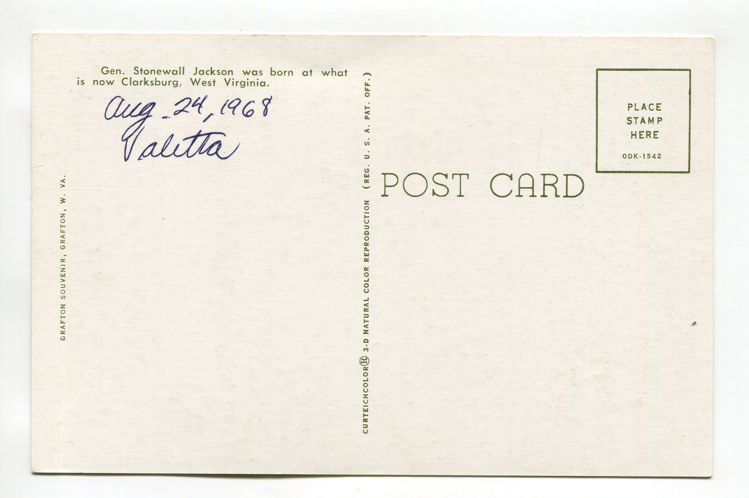 Gen Stonewall Jackson postcard