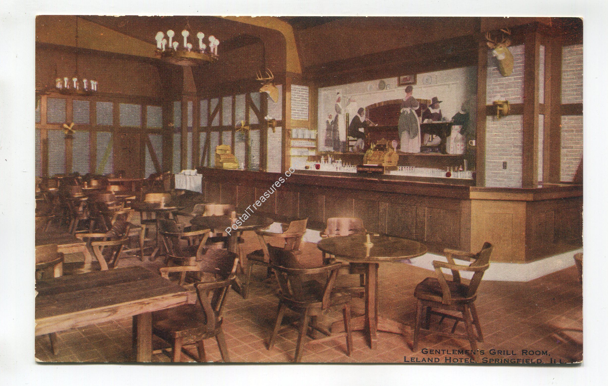 Gentlemen’s Grill Room Leland Hotel Springfield Illinois postcard