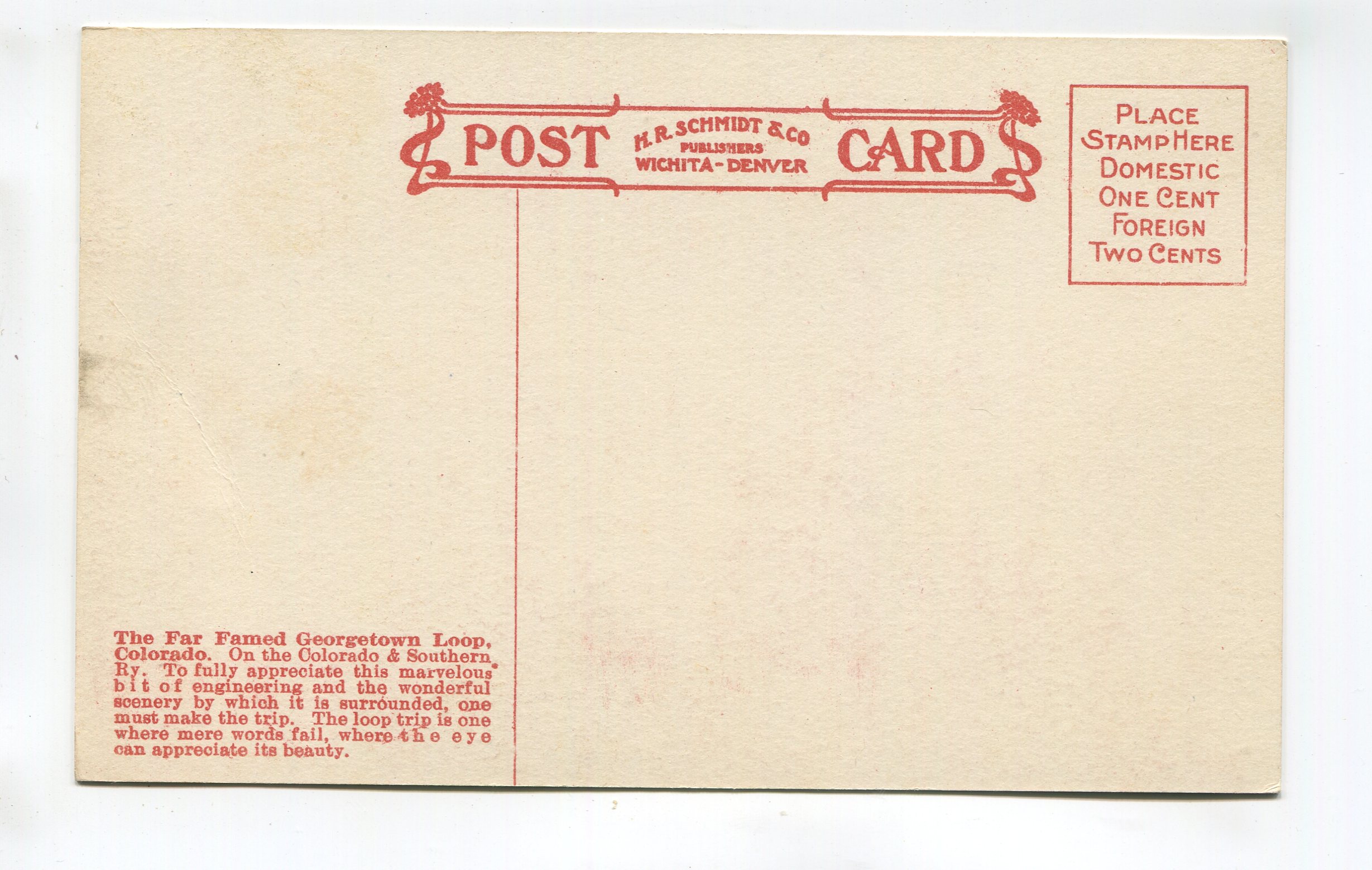 Georgetown Loop Colorado On the Colorado and Southern Railway postcard
