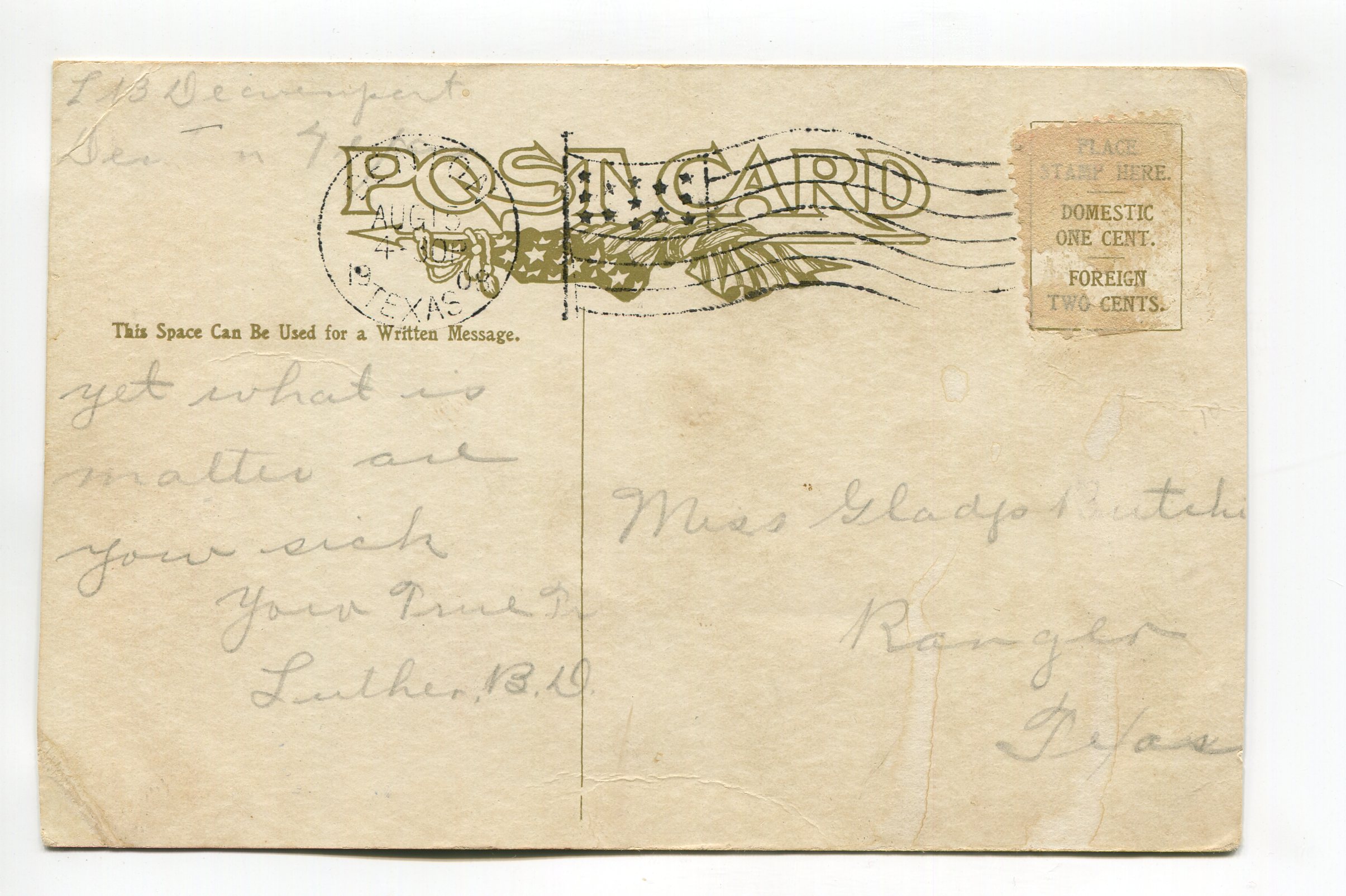 Postmark -1908 stamp missing
