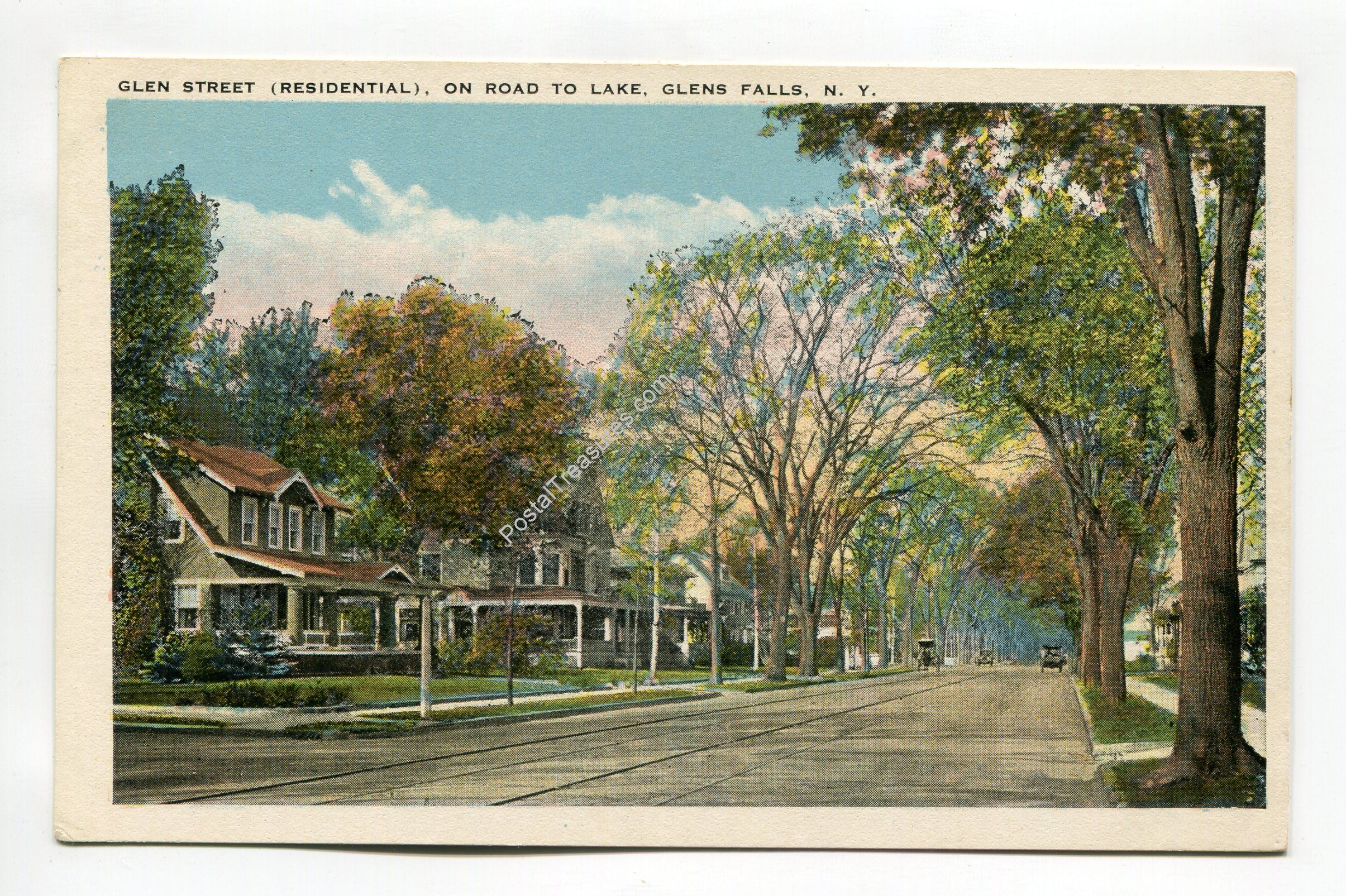 Glen Street (Residential) on road to lake Glen Falls New York postcard