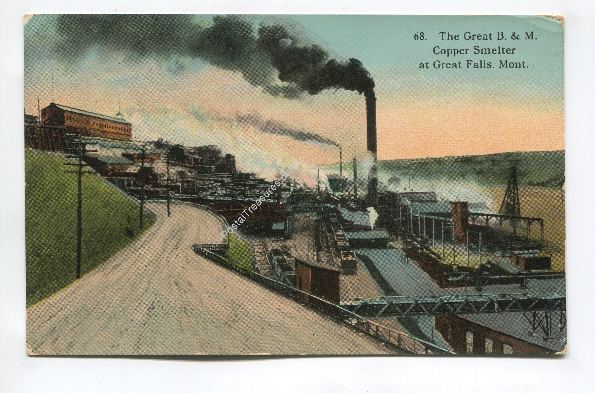 Great B and M Copper Smelter at Great Falls Montana postcard