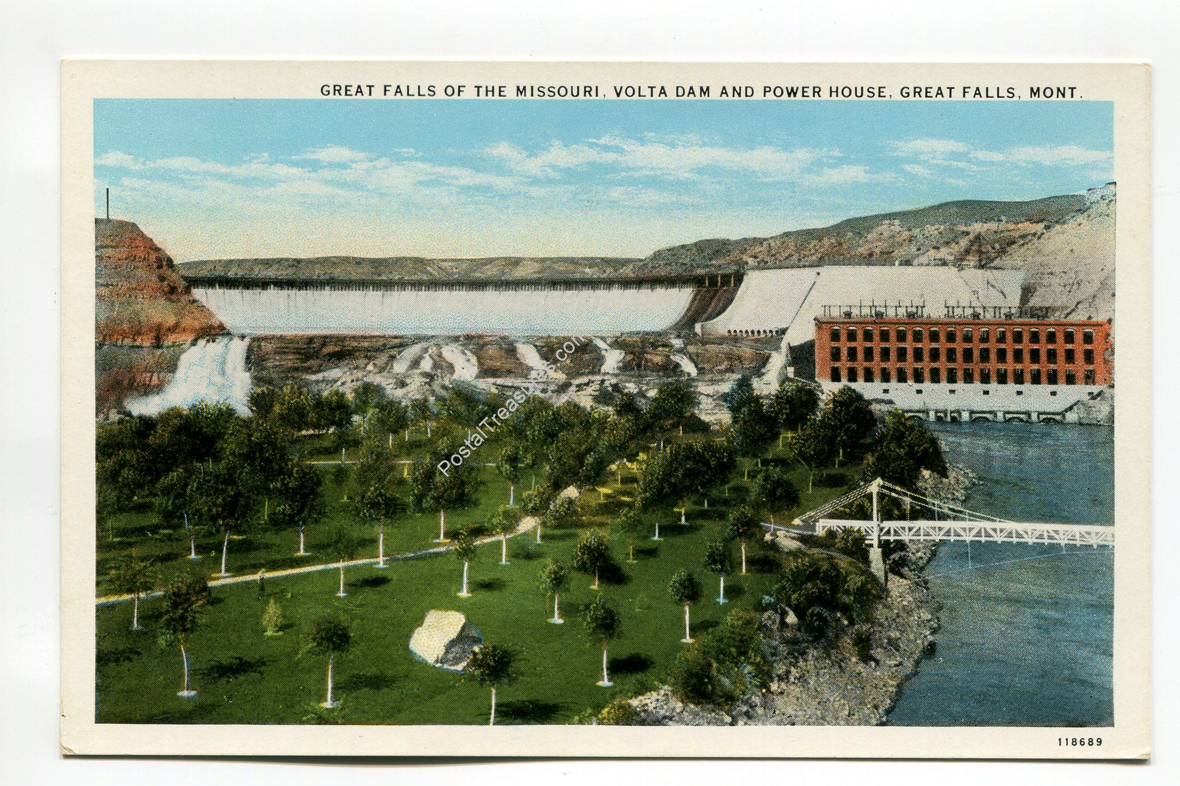 Great Falls of the Missouri Volta Dam and Power House Great Falls Montana postcard