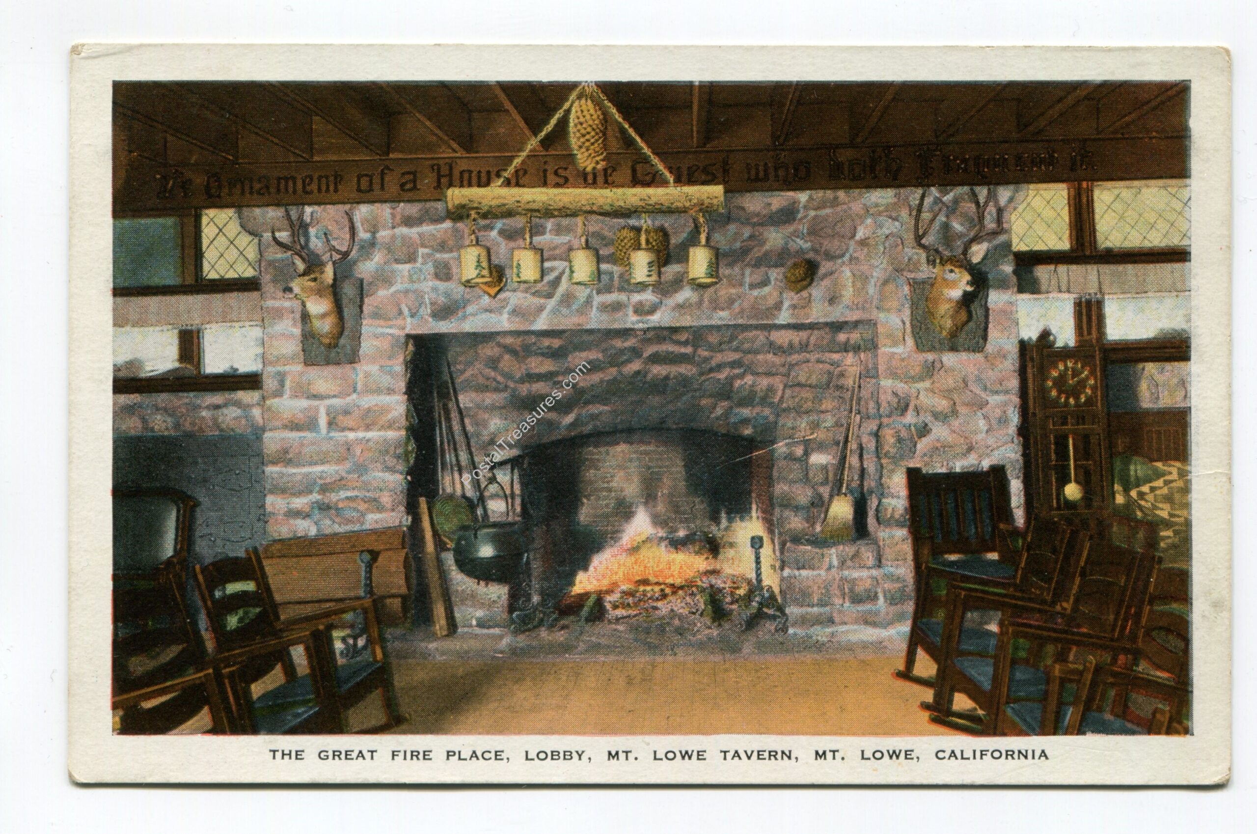 Great Fire Place Lobby Mt Lowe Tavern Mt Lowe California postcard