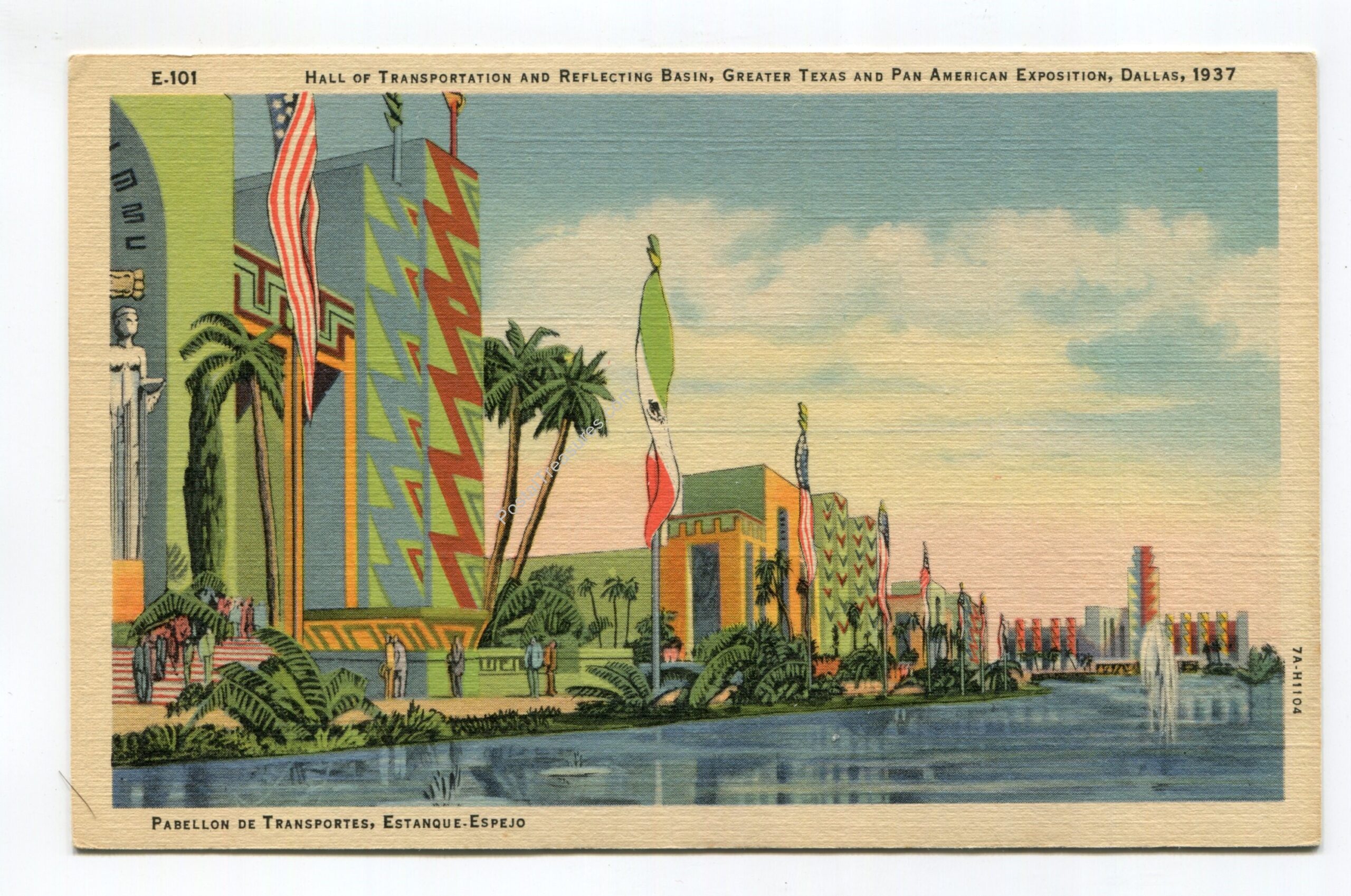 Hall of Transportation and Reflecting Basin Greater Texas and Pan American Exposition Dallas 1937 postcard