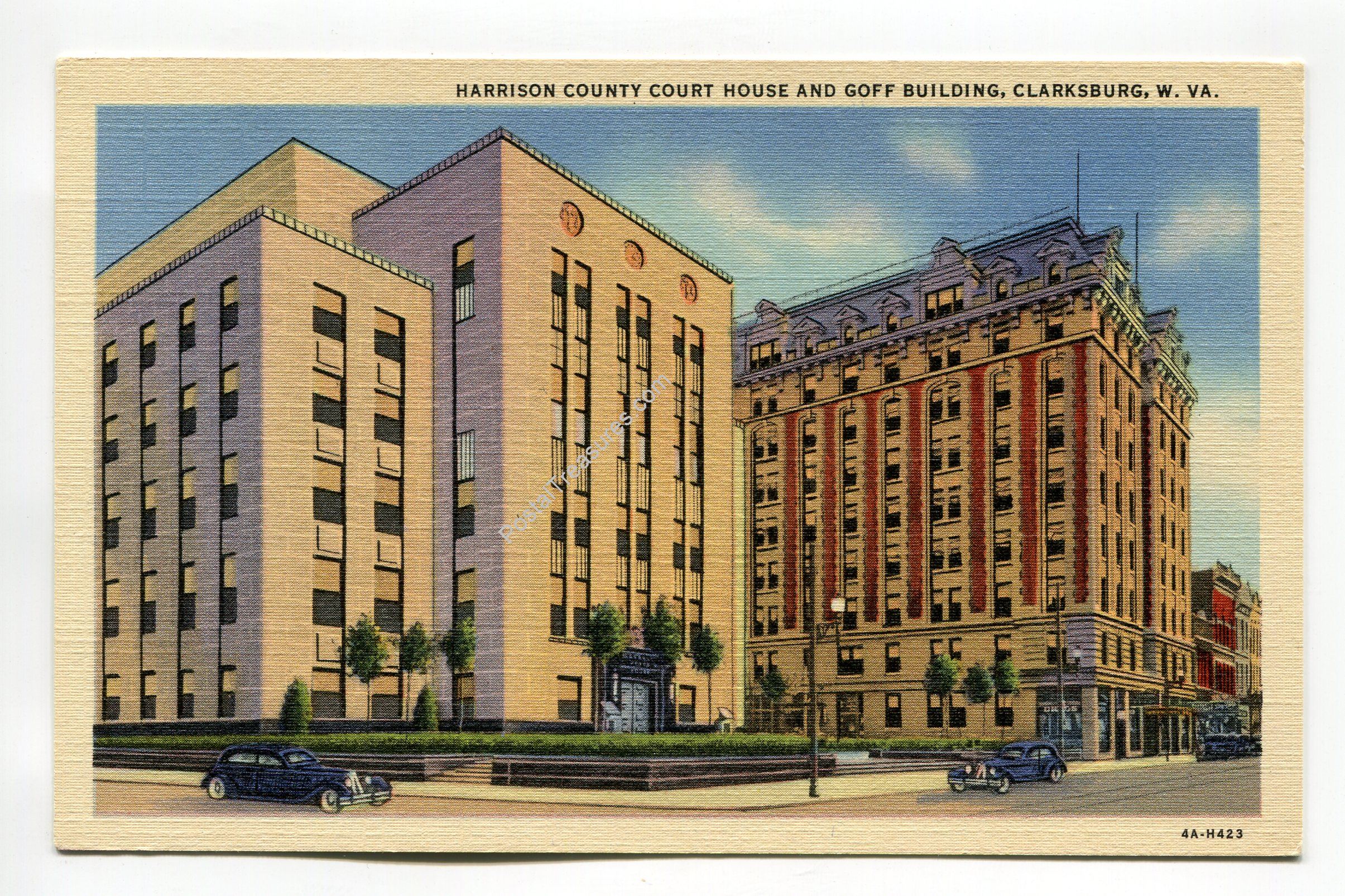 Harrison County Court House and Goff Building Clarksburg West Virginia postcard