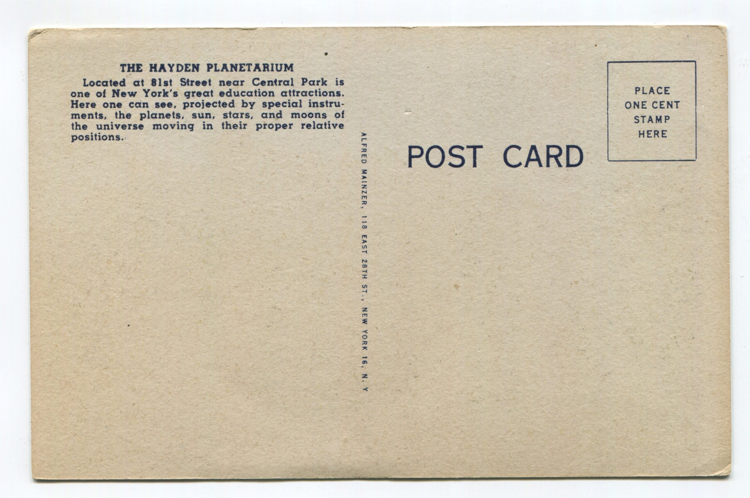 Hayden Planetarium 81st Street and Central Park West New York City New York postcard