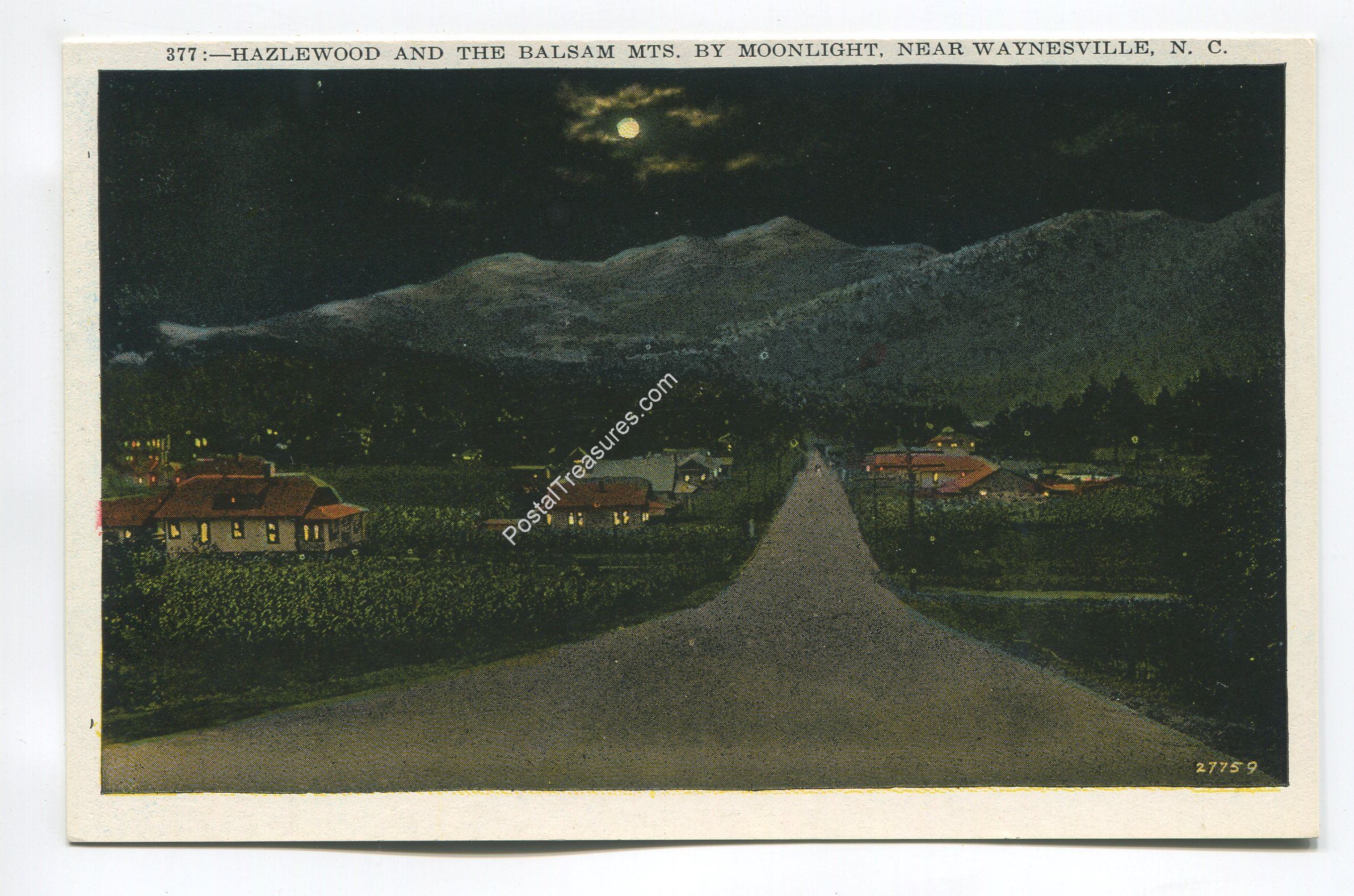 Hazelwood and the Balsam Mountains by Moonlight near Waynesville North Carolina postcard