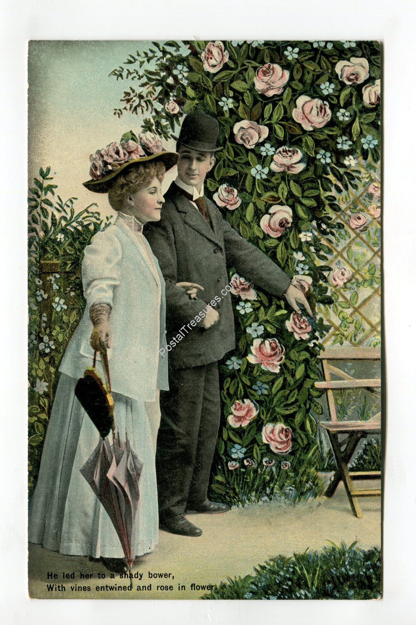He led her to a shady bower postcard
