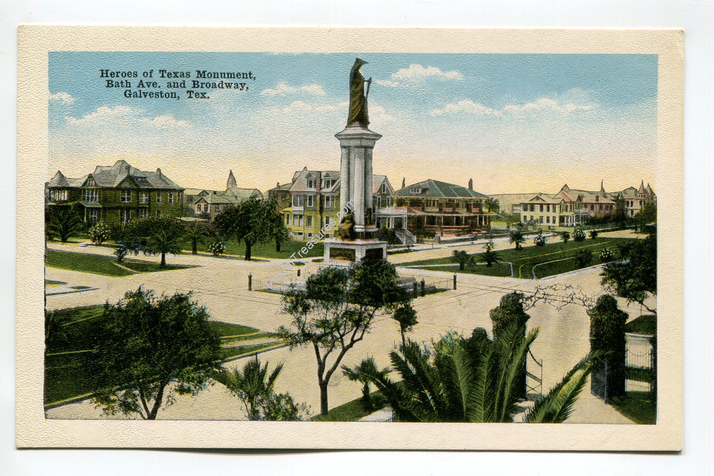 Heroes of Texas Monument Bath Ave and Broadway Galveston Texas postcard