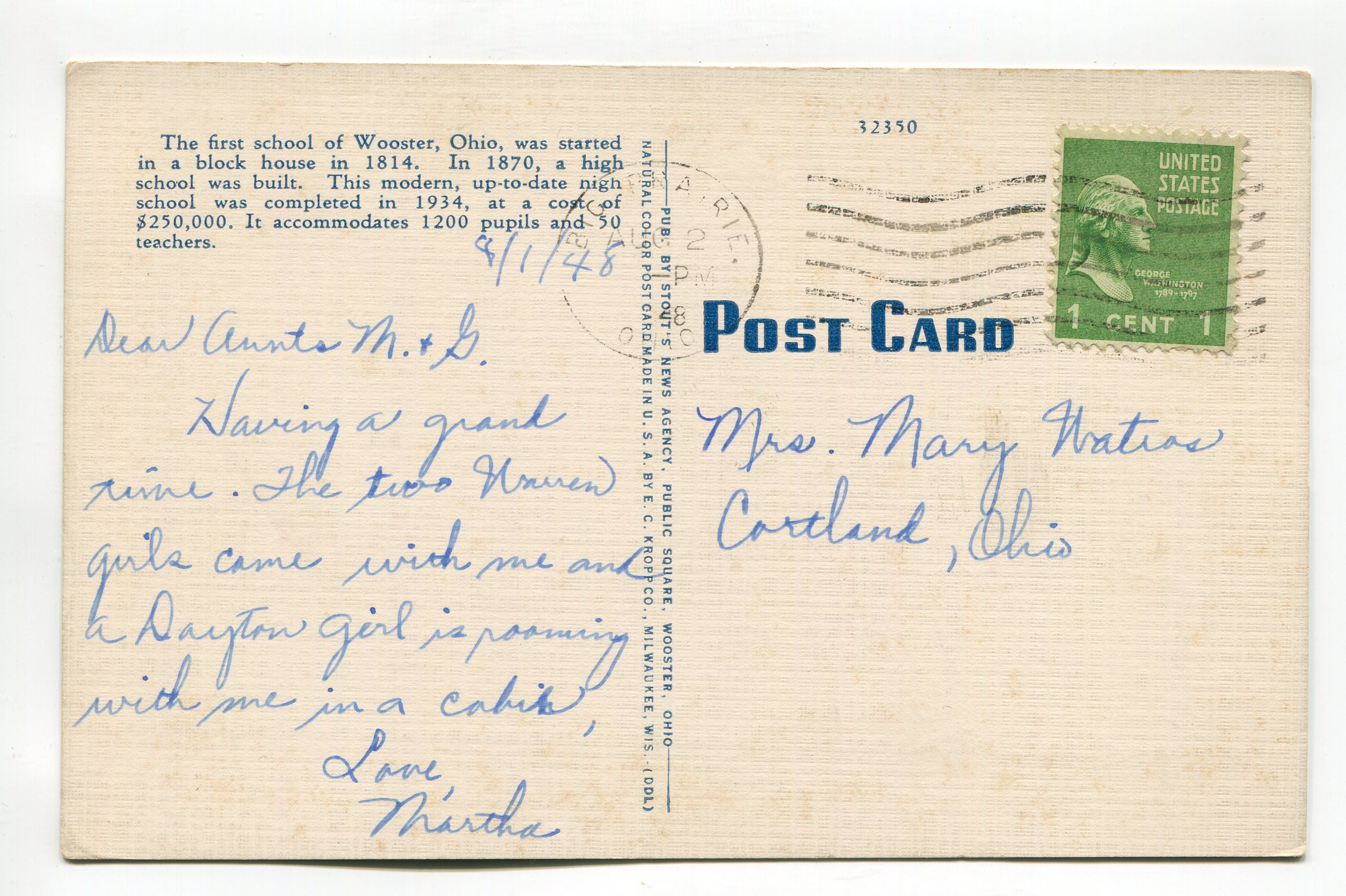 High School Wooster Ohio postcard
