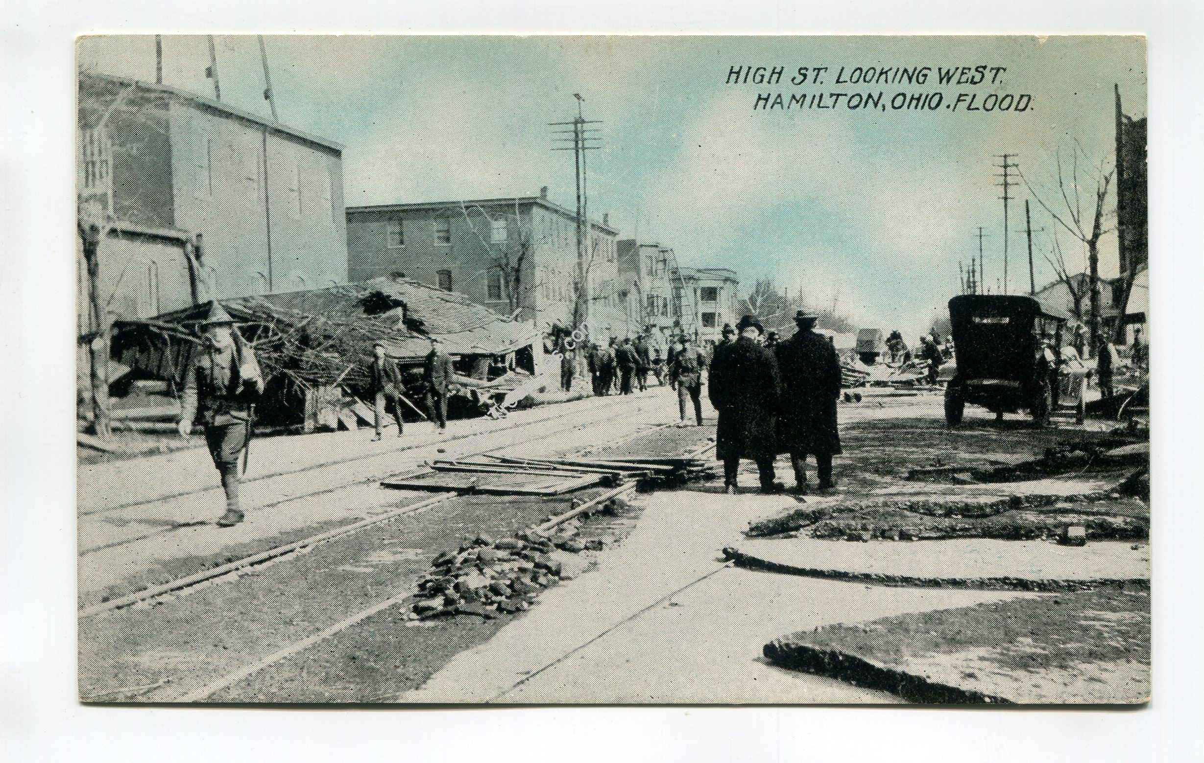 High Street Looking West Flood Hamilton Ohio postcard