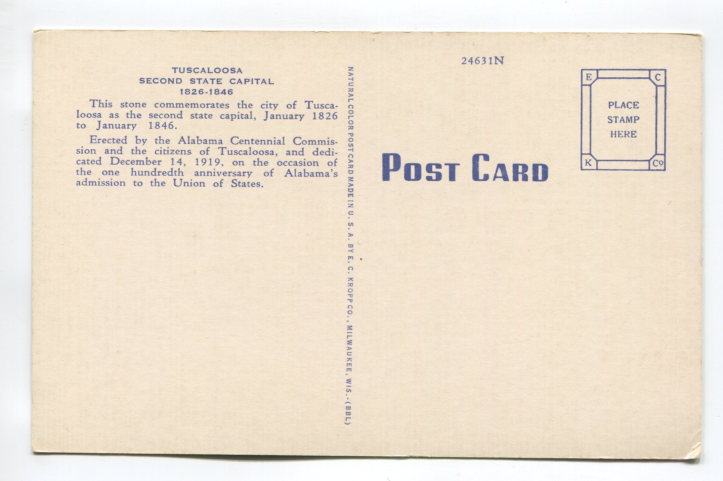 Historic Monument Second State Capitol Tuscaloosa Alabama postcard