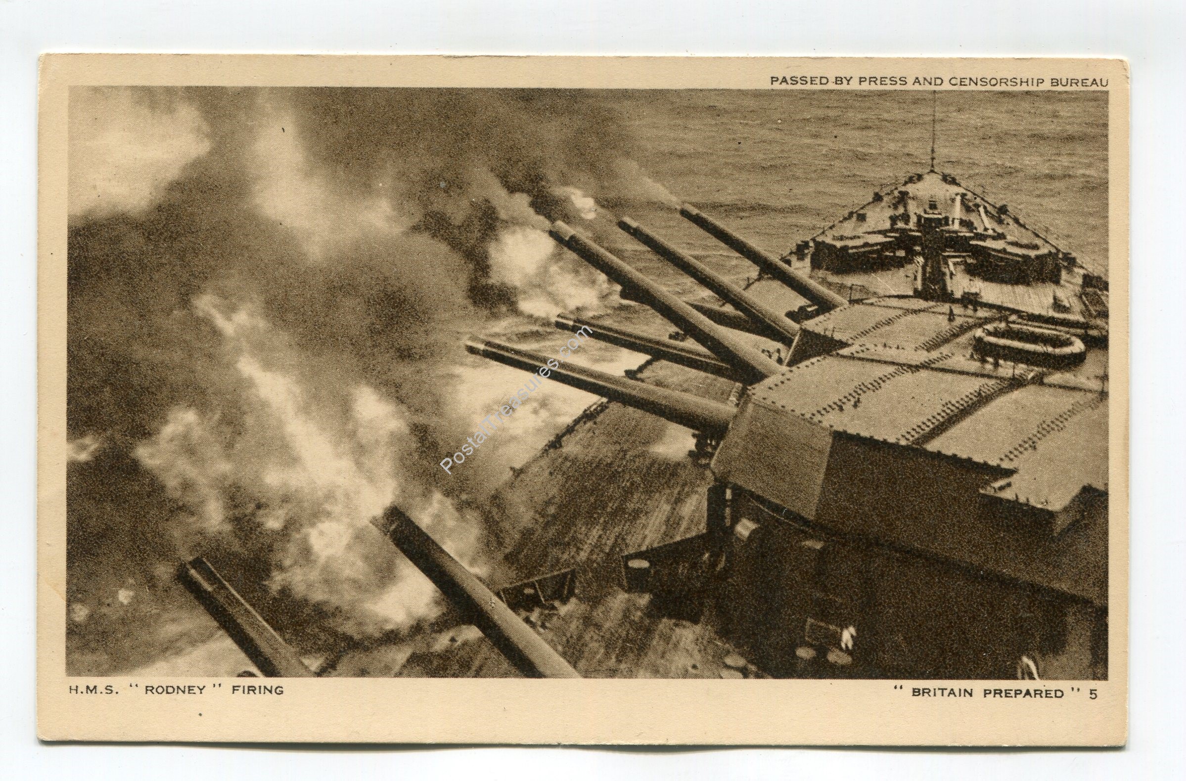 HMS Rodney Firing postcard