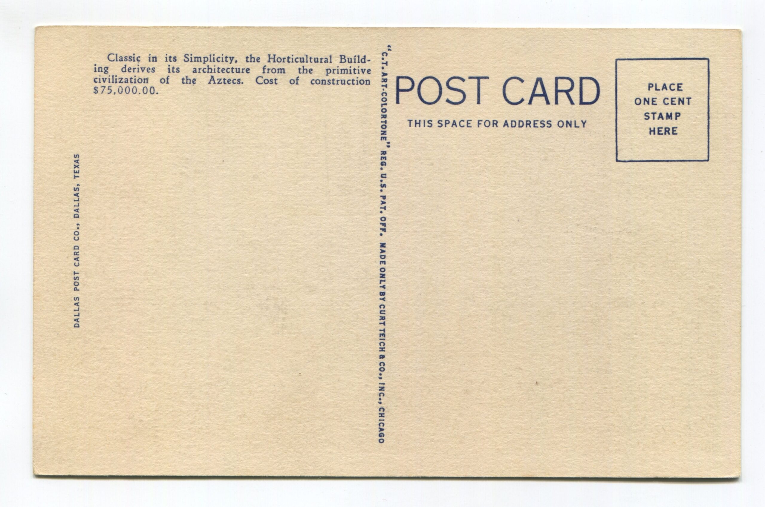Horticultural Building Texas Centennial Exposition Dallas postcard
