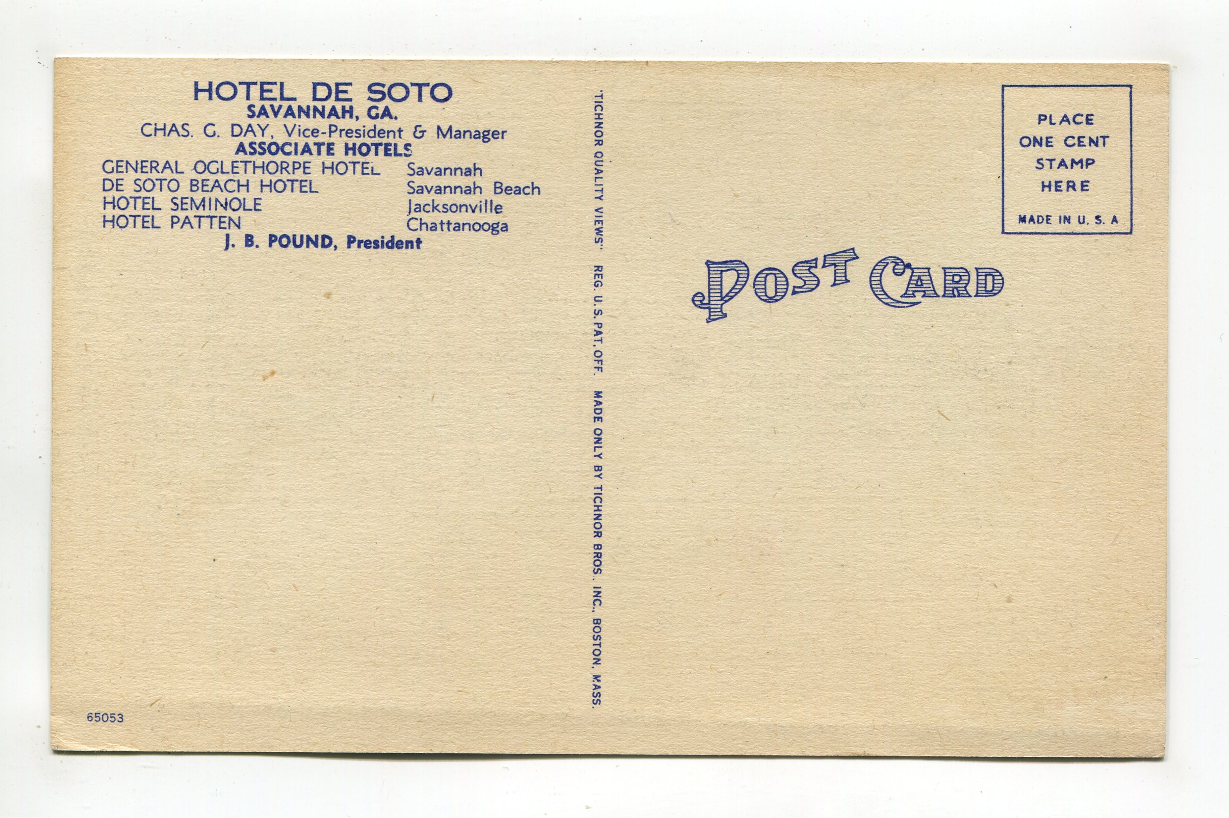 Hotel De Soto Savannah Georgia postcard
