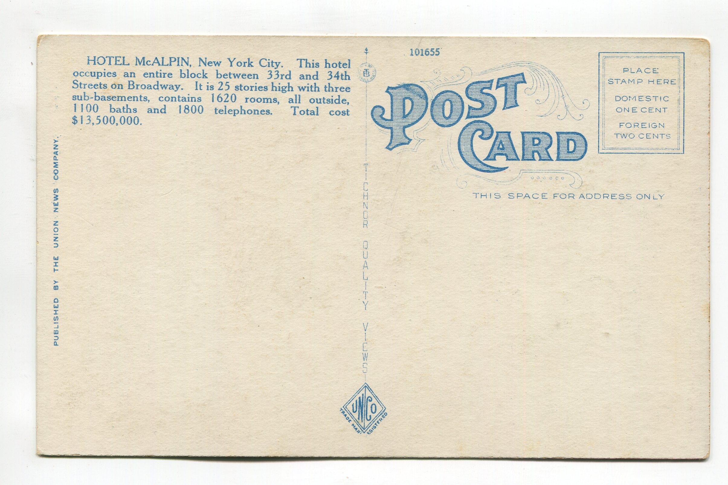Hotel McAlpin 34th Street and Broadway New York City postcard