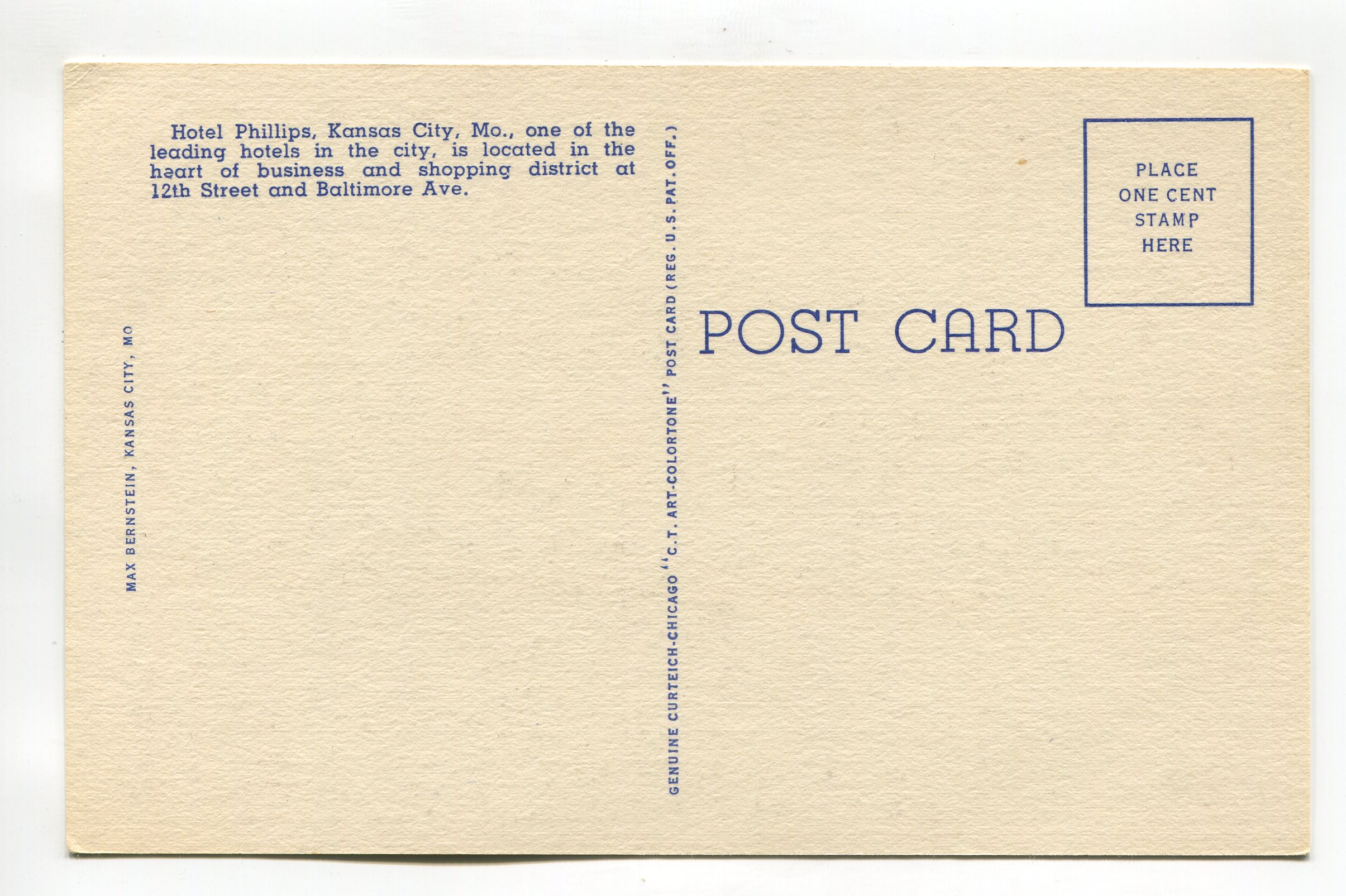 Hotel Phillips Kansas City Missouri postcard