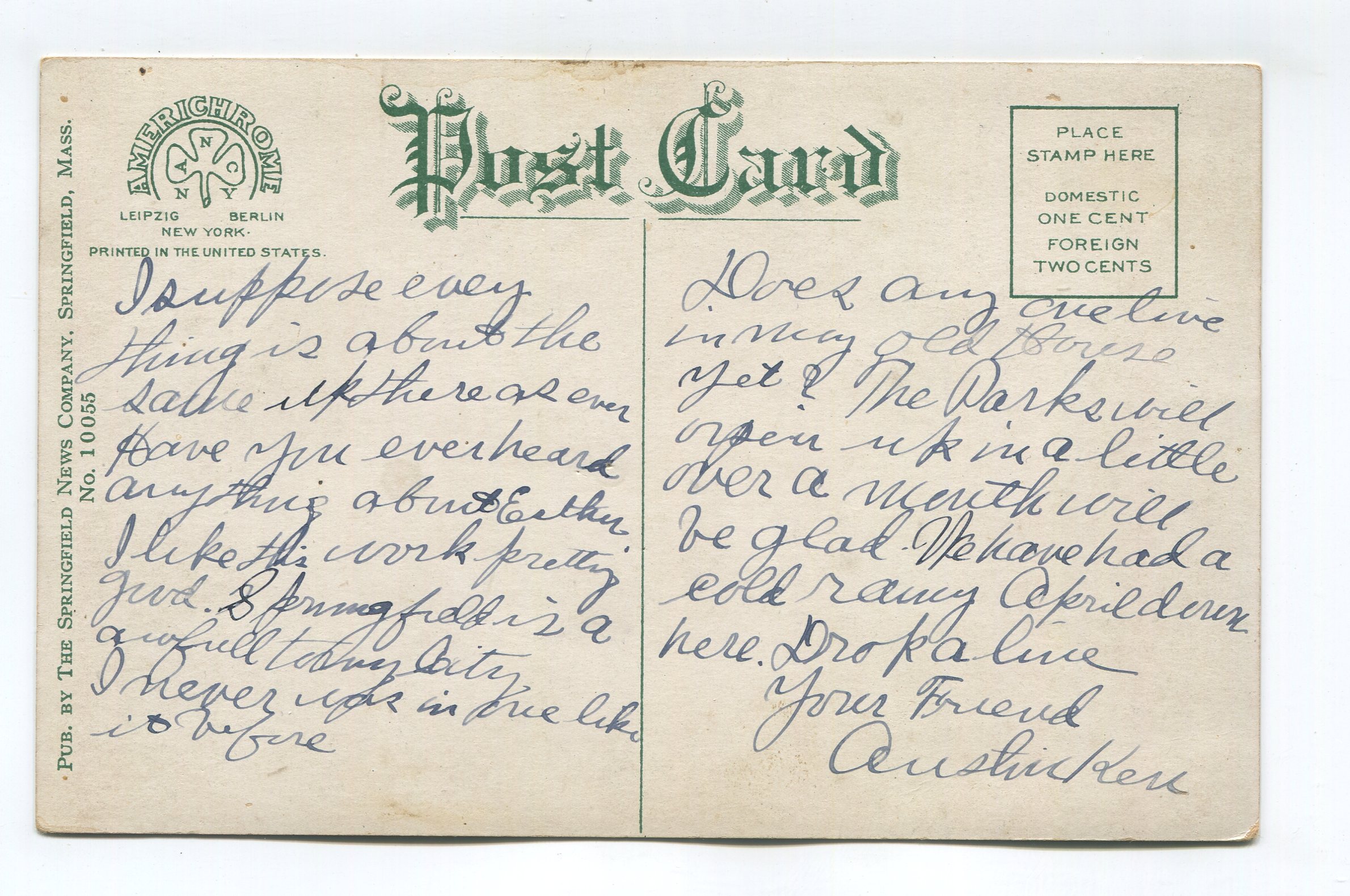 Hotel Worthy Springfield Massachusetts postcard