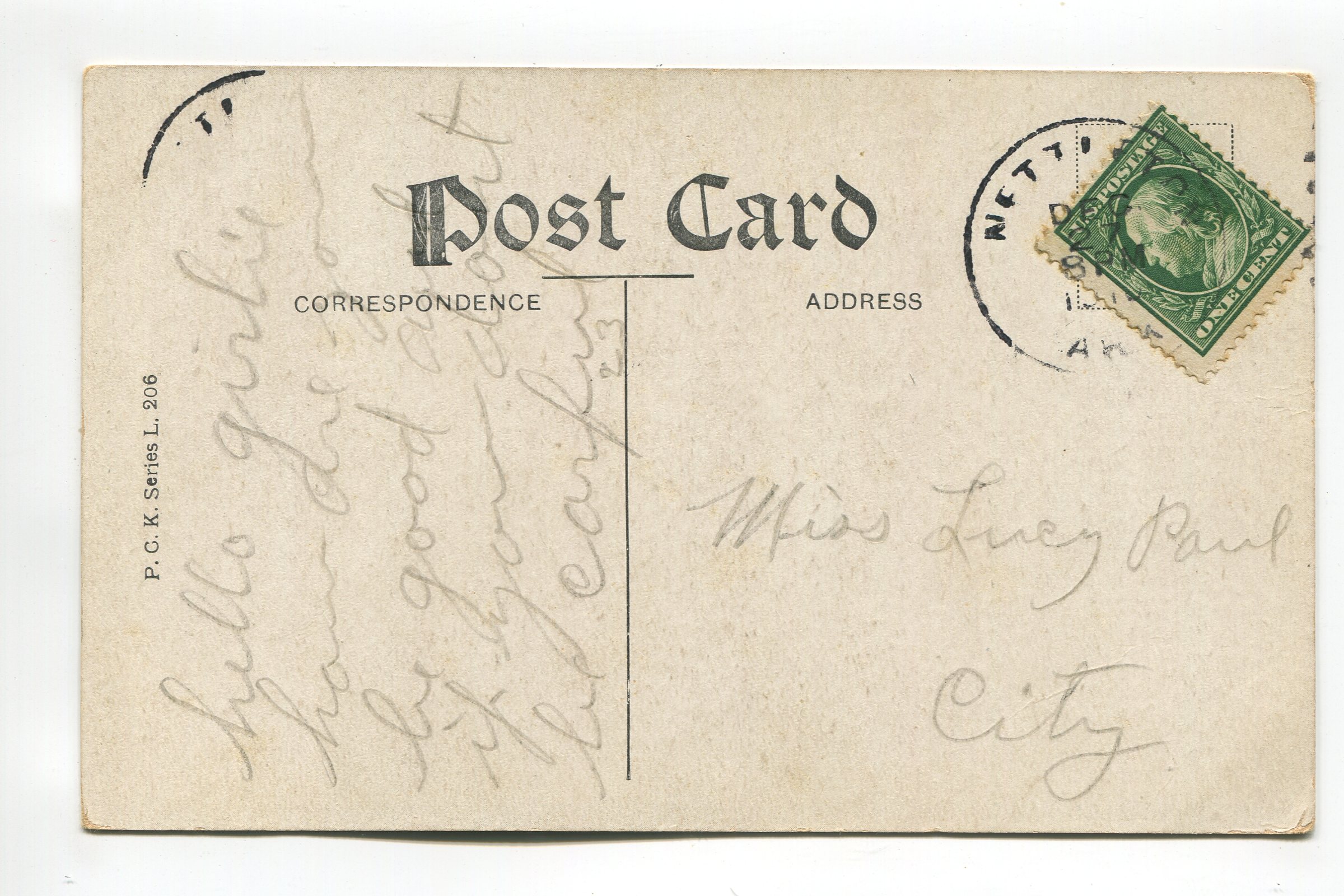 Condition – noticeable corner/edge wear, crease in corners, cancellation impression visible on card front, album impression marks visible around corners, marks on card front, soiling/marks