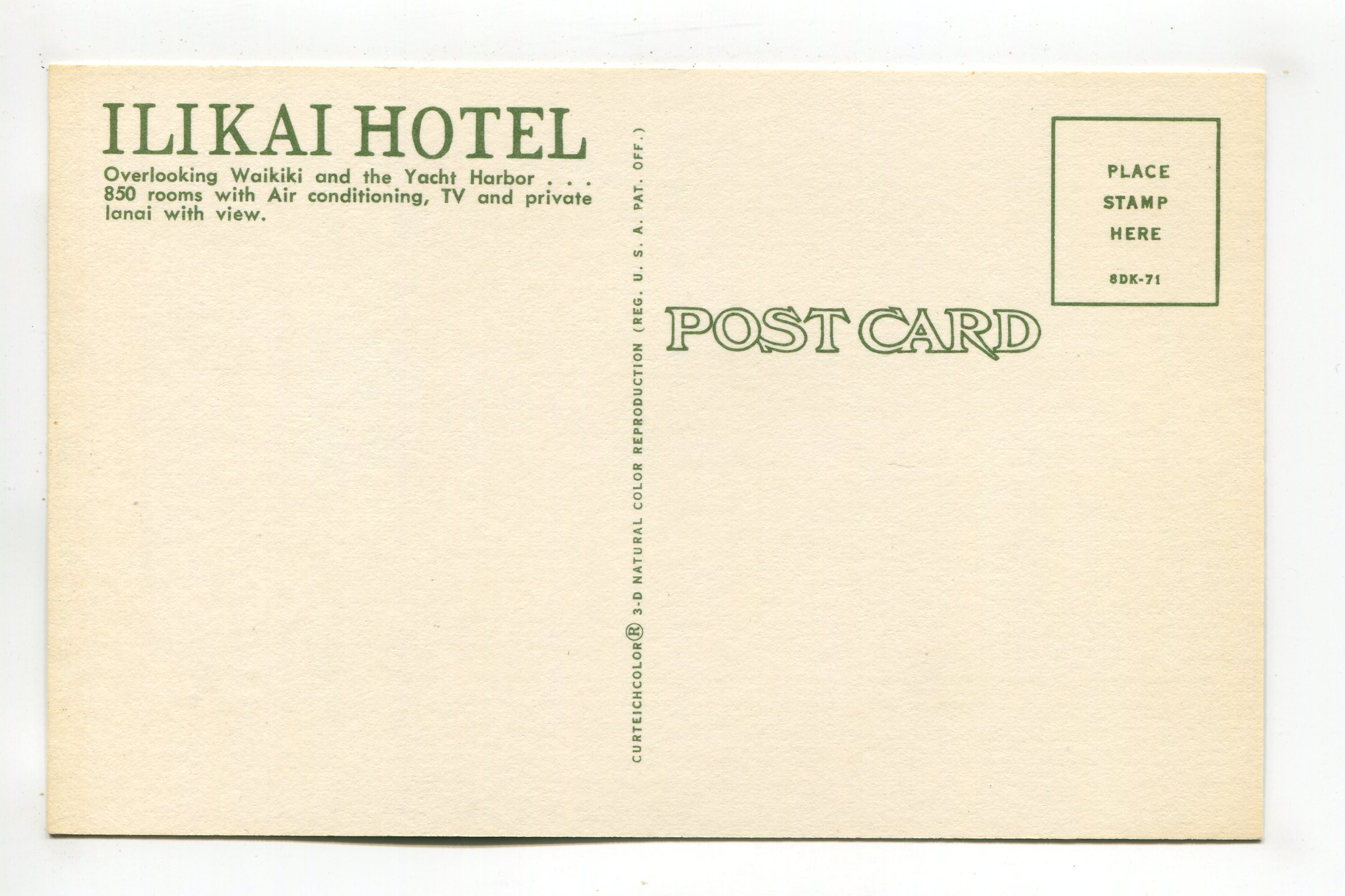 Ilikai Hotel Waikiki and the Yacht Harbor postcard