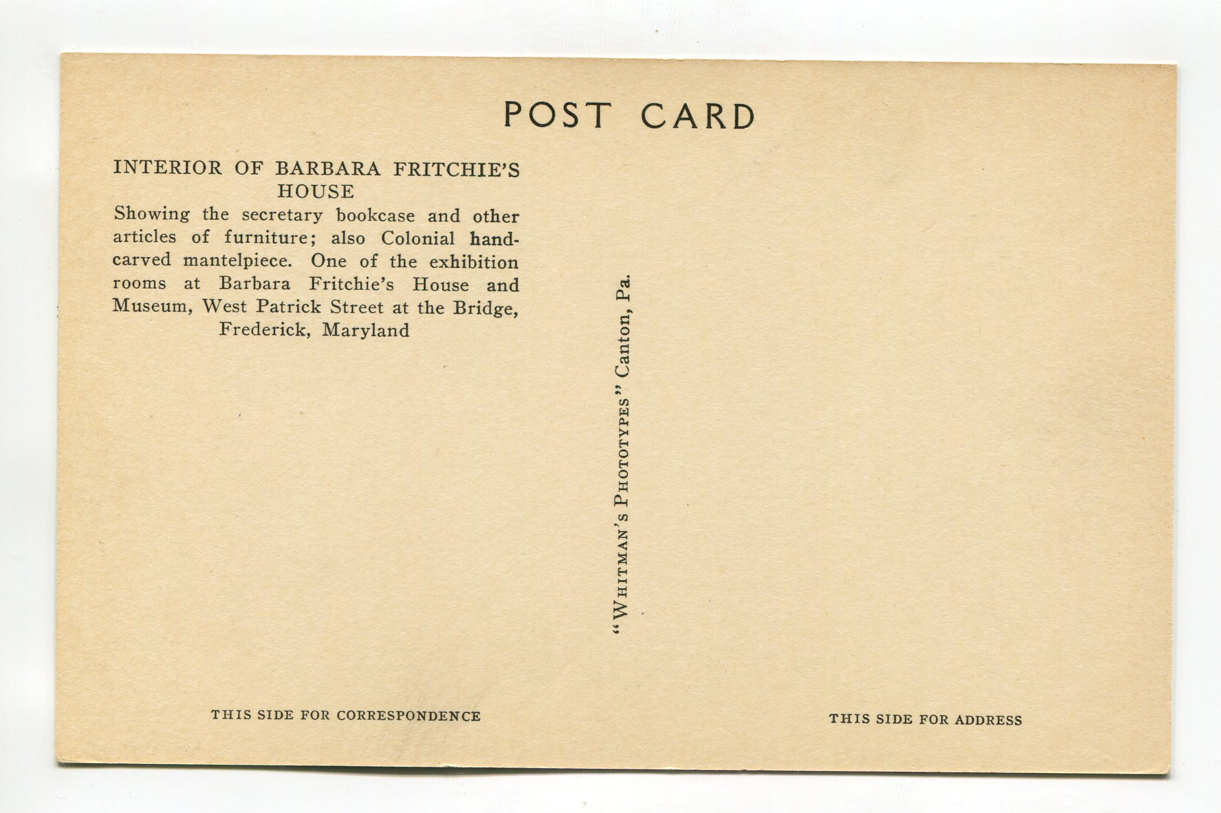 Interior of Barbara Fritchie’s House Frederick Maryland postcard