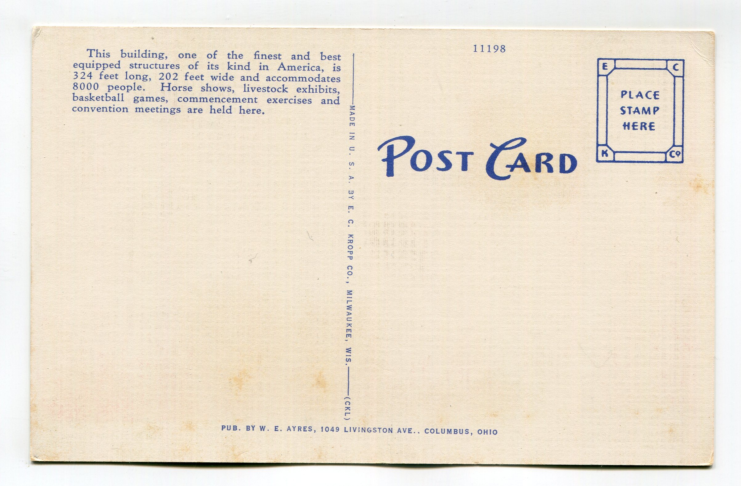Interior of Coliseum Ohio State Fair Grounds Columbus Ohio postcard