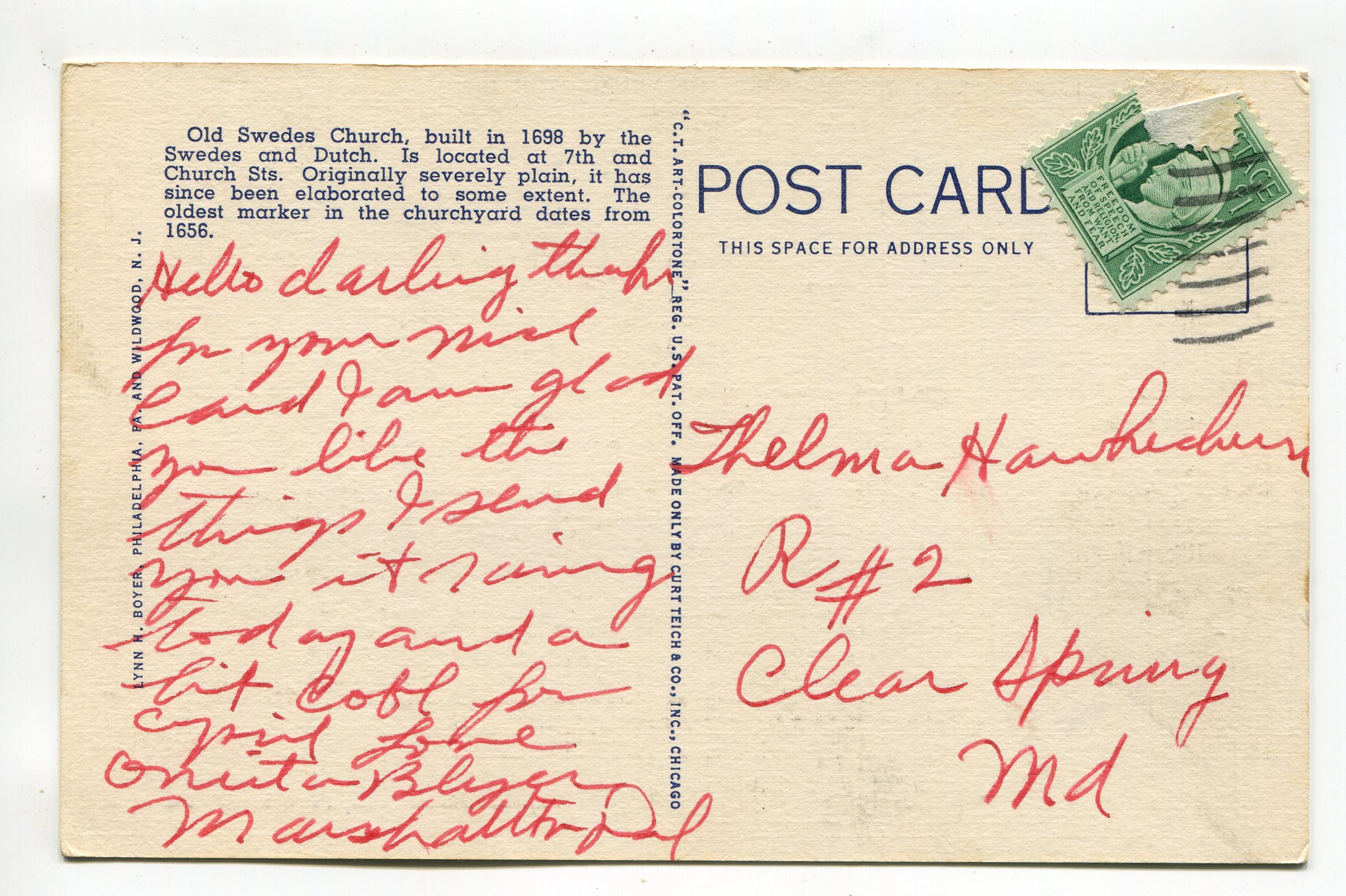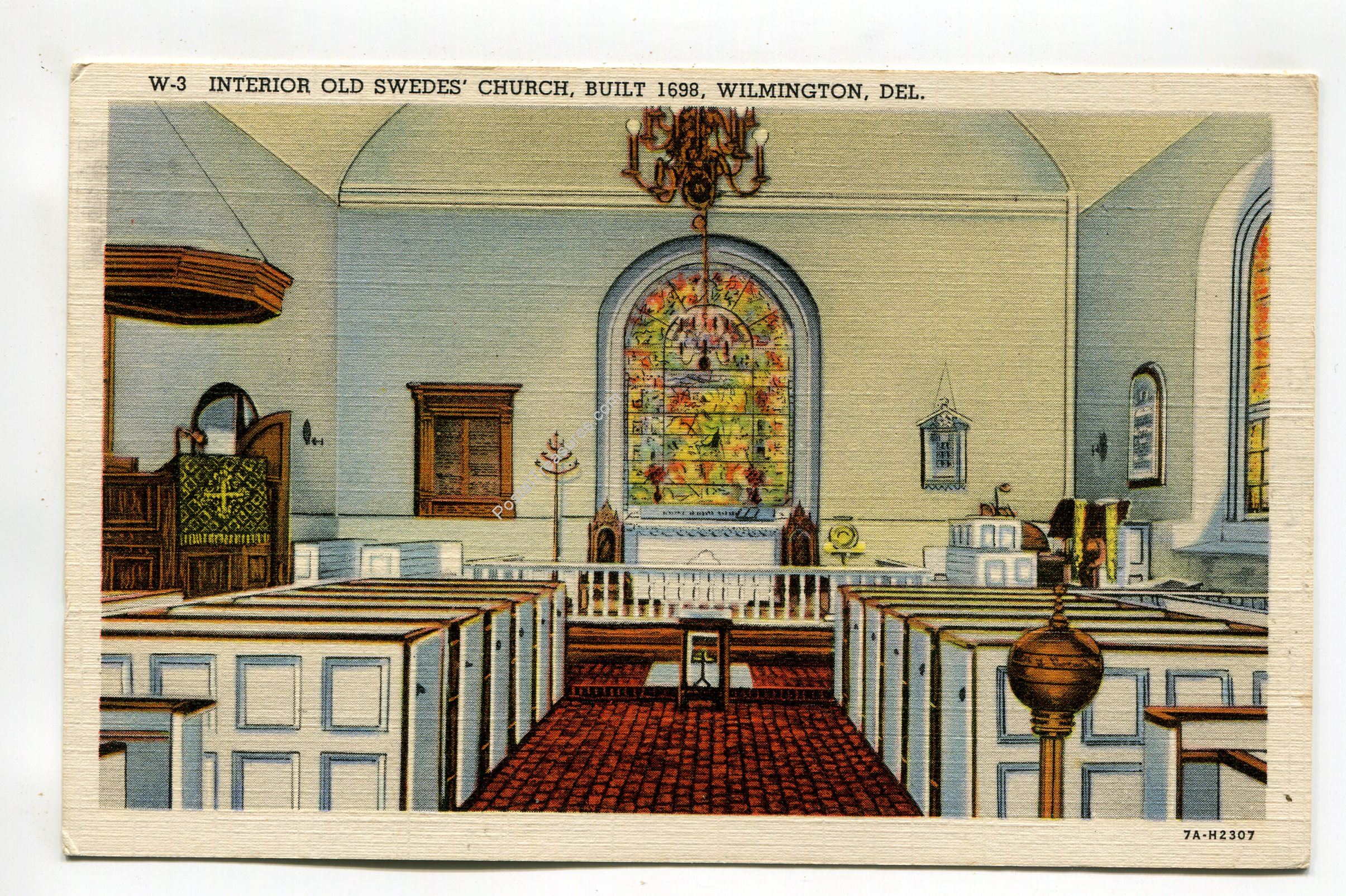 Interior Old Swedes’ Church Built 1698 Wilmington Delaware postcard