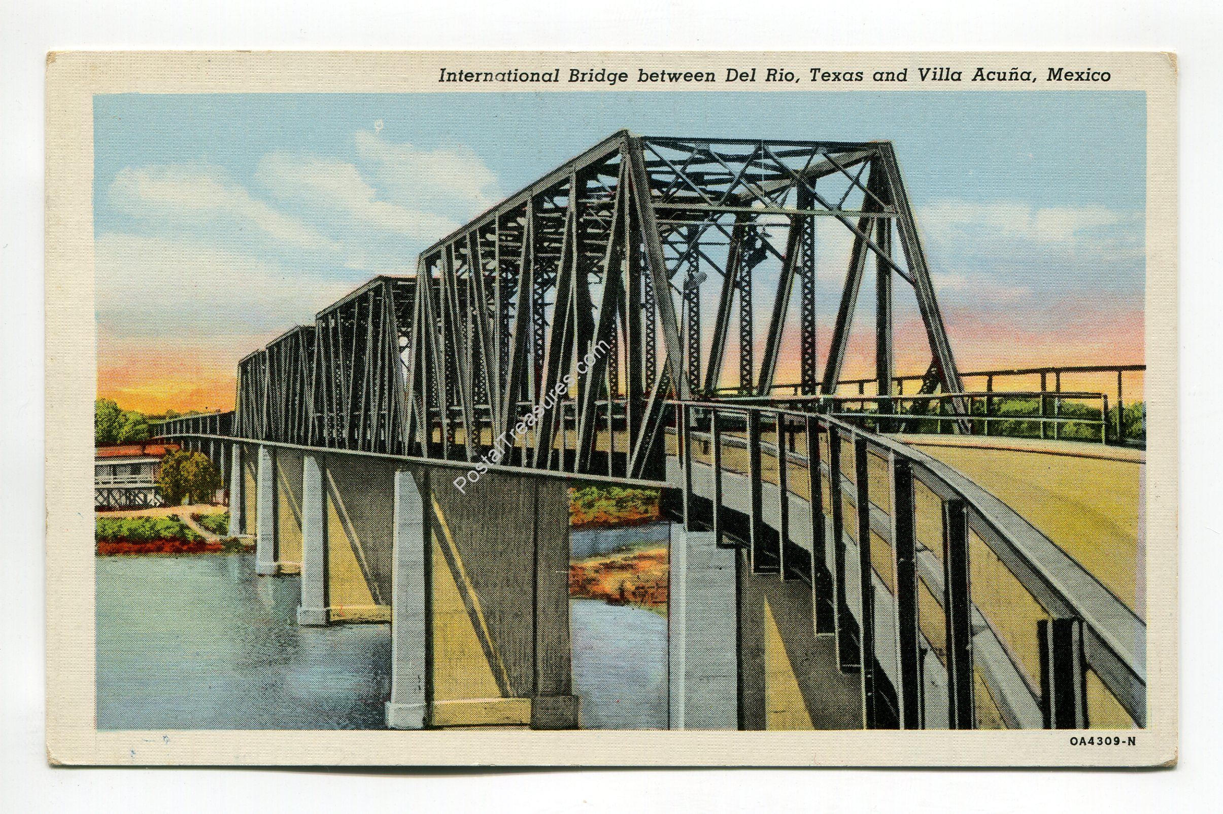 International Bridge between Del Rio Texas and Villa Acuna Mexico postcard
