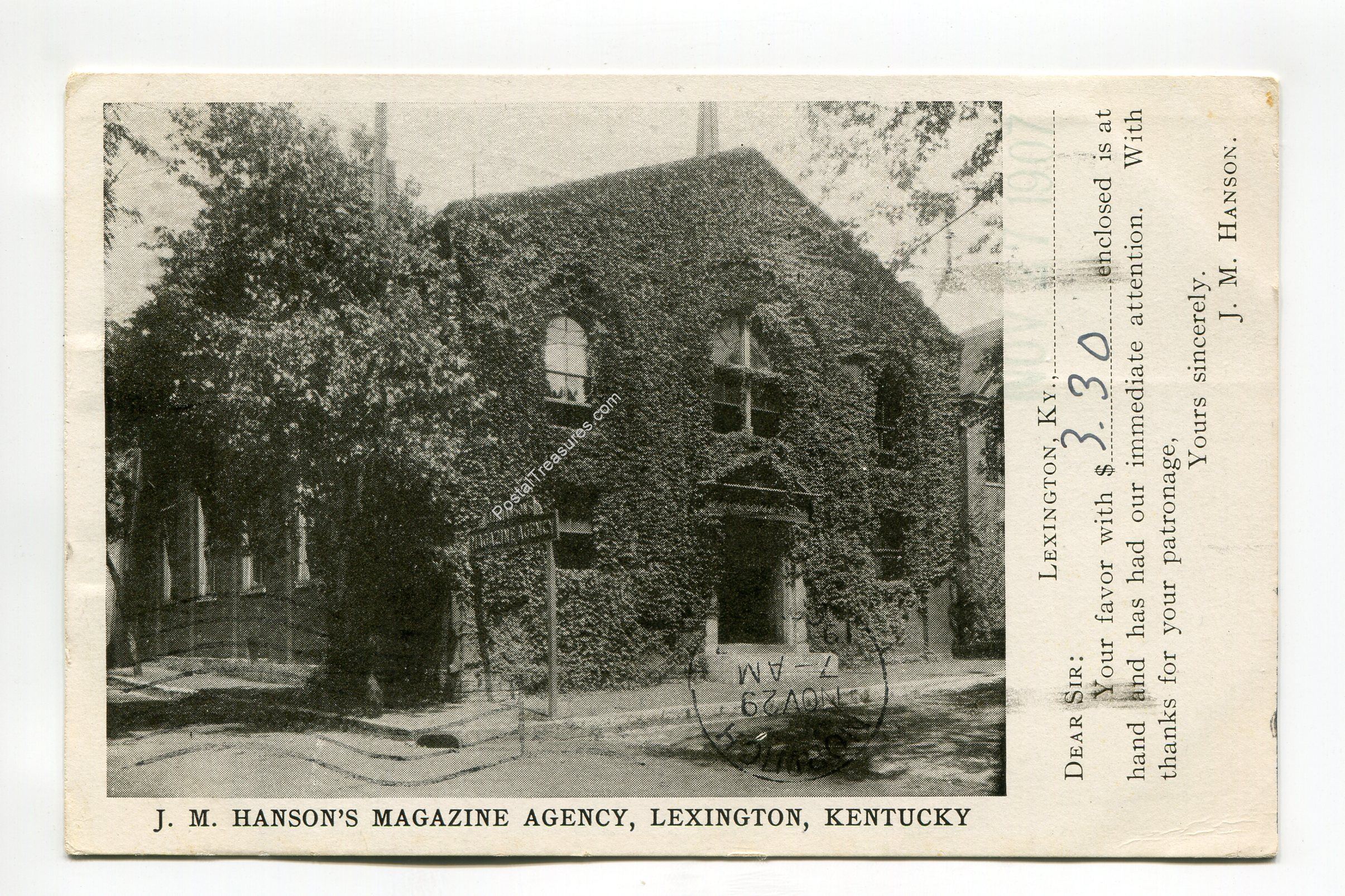 J M Hanson’s Magazine Agency Lexington Kentucky postcard