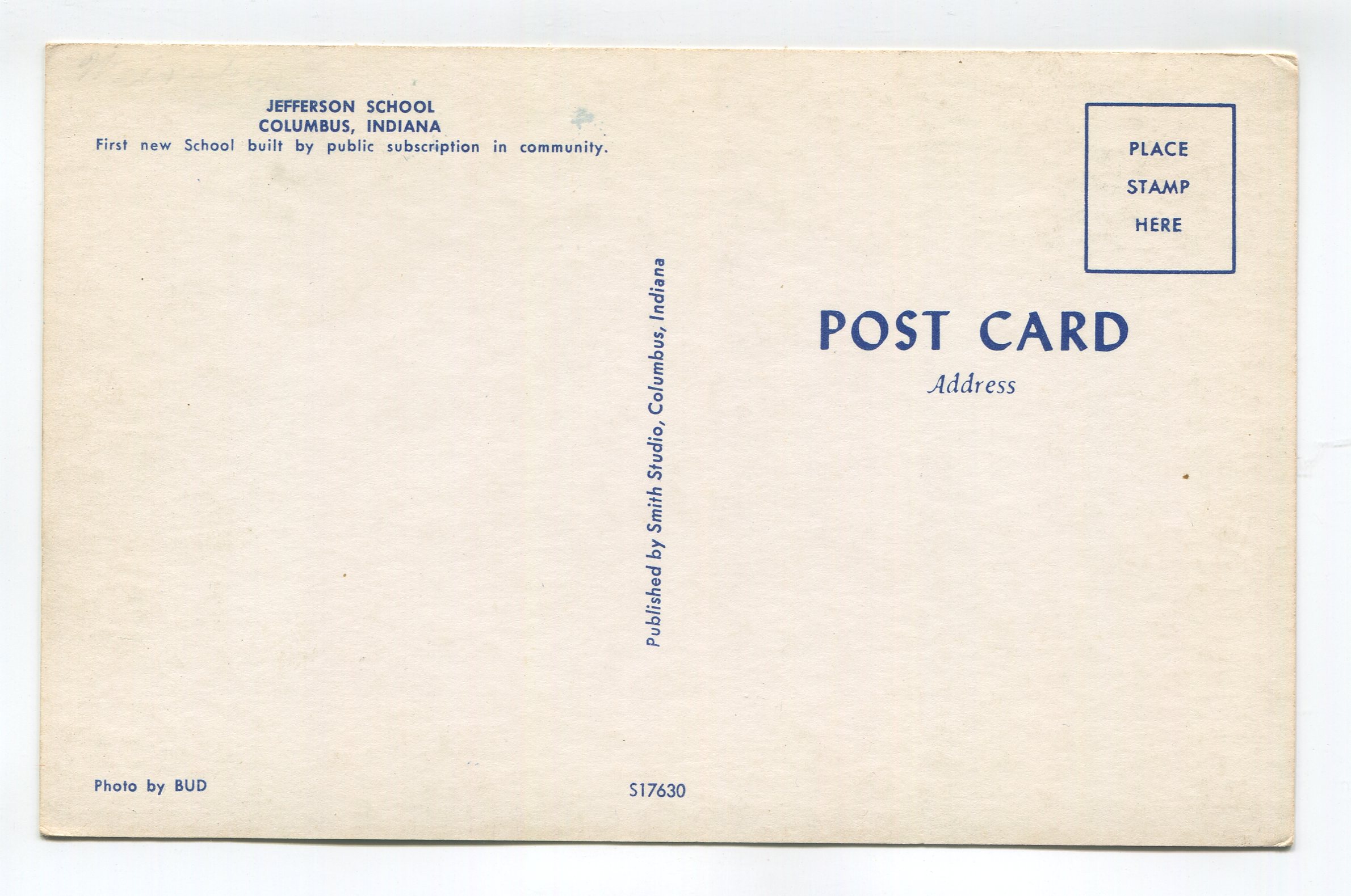 Jefferson School Columbus Indiana postcard