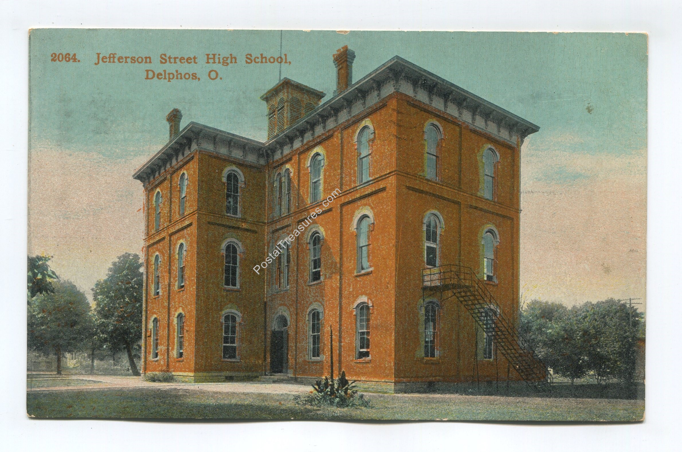 Jefferson Street High School Delphos Ohio postcard