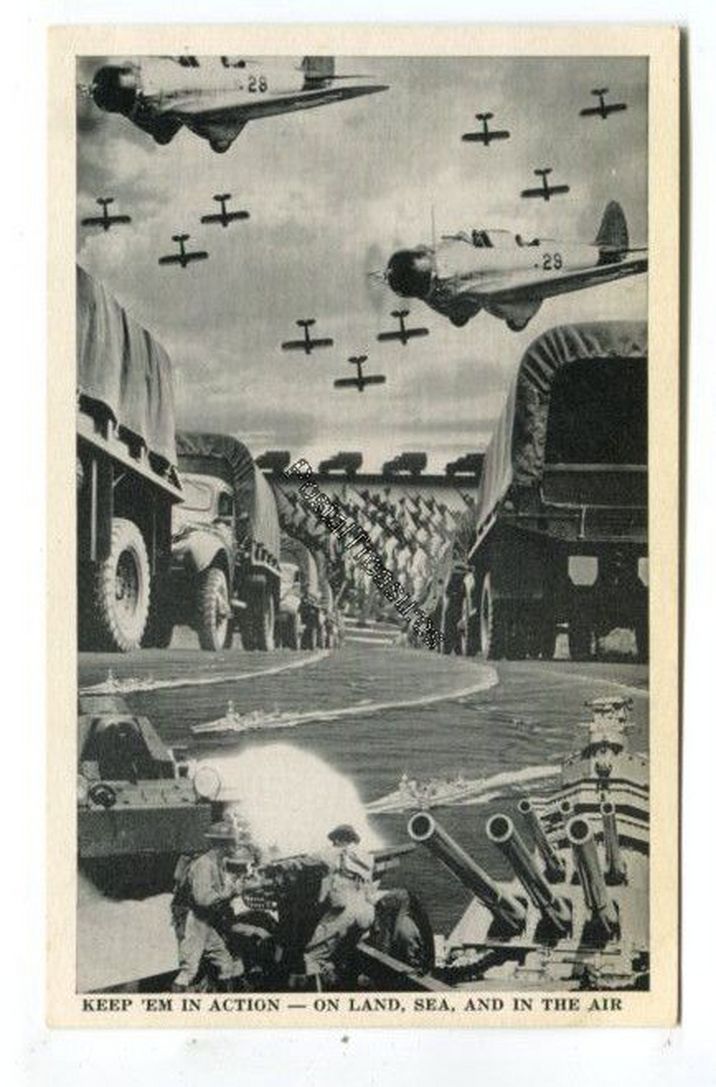 Keep Em in Action on Land Sea and in the Air postcard
