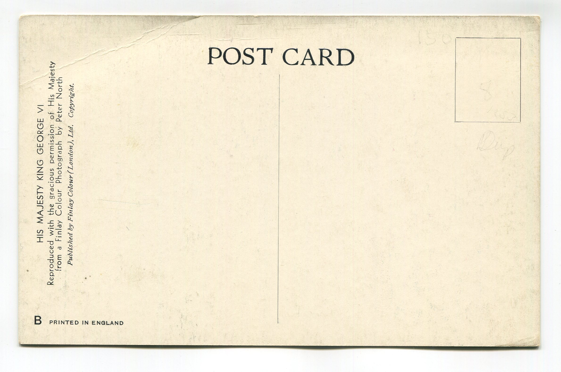 His Majesty King George VI reproduced from a Finlay Colour Photograph by Peter North postcard