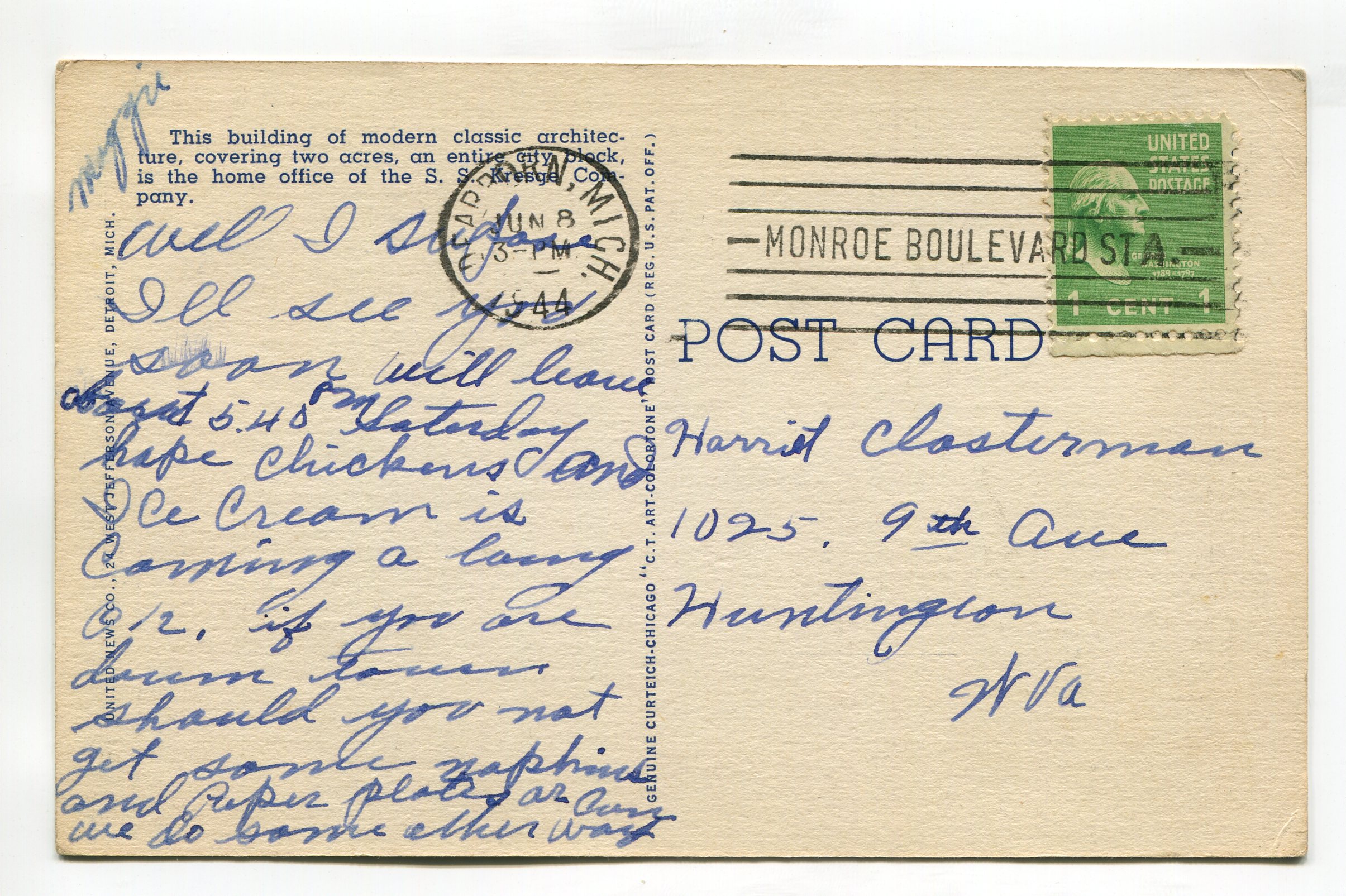 Kresge Administration Building Detroit Michigan postcard