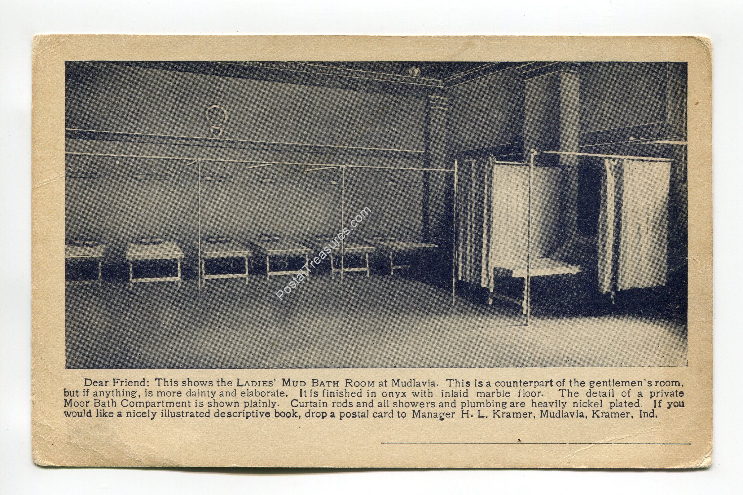 Ladies Mud Room at Mudlavia Kramer Indiana postcard