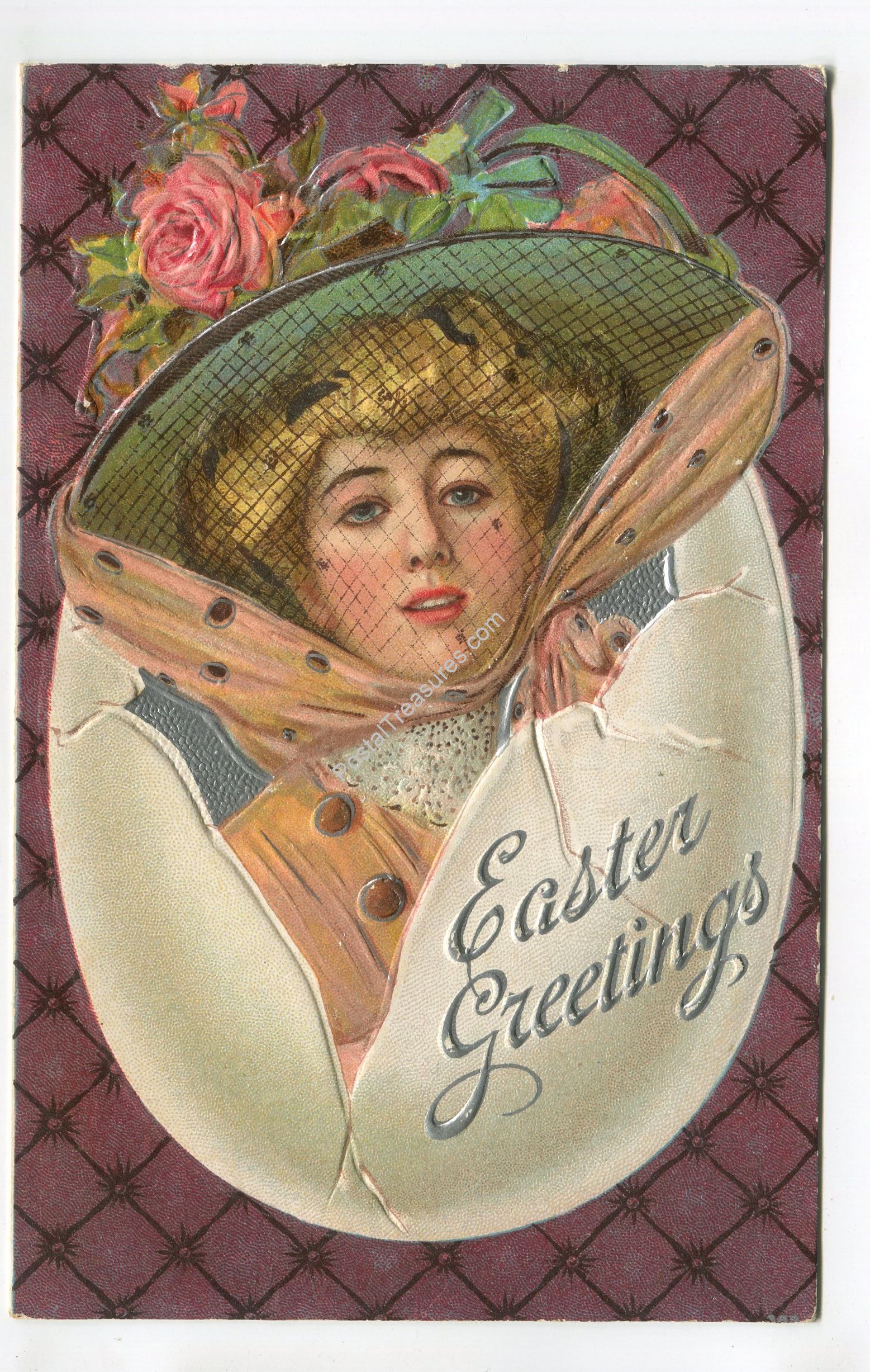 Lady in Bonnet Easter Greetings postcard