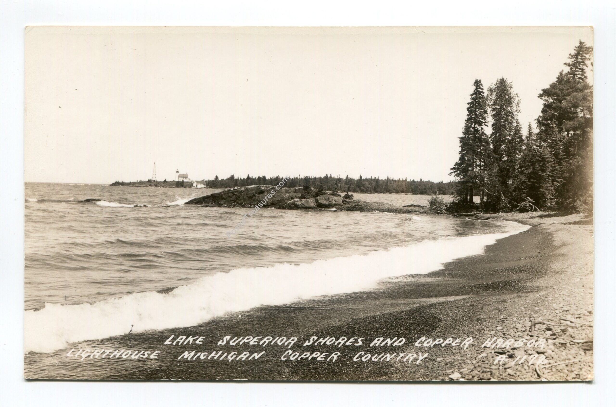 Lake Superior Shores and Copper Harbor Lighthouse Michigan postcard