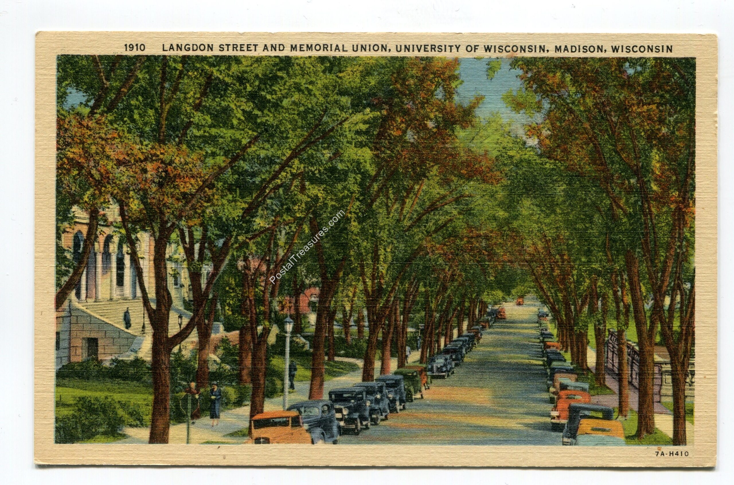 Langdon Street and Memorial Union University of Wisconsin Madison Wisconsin postcard