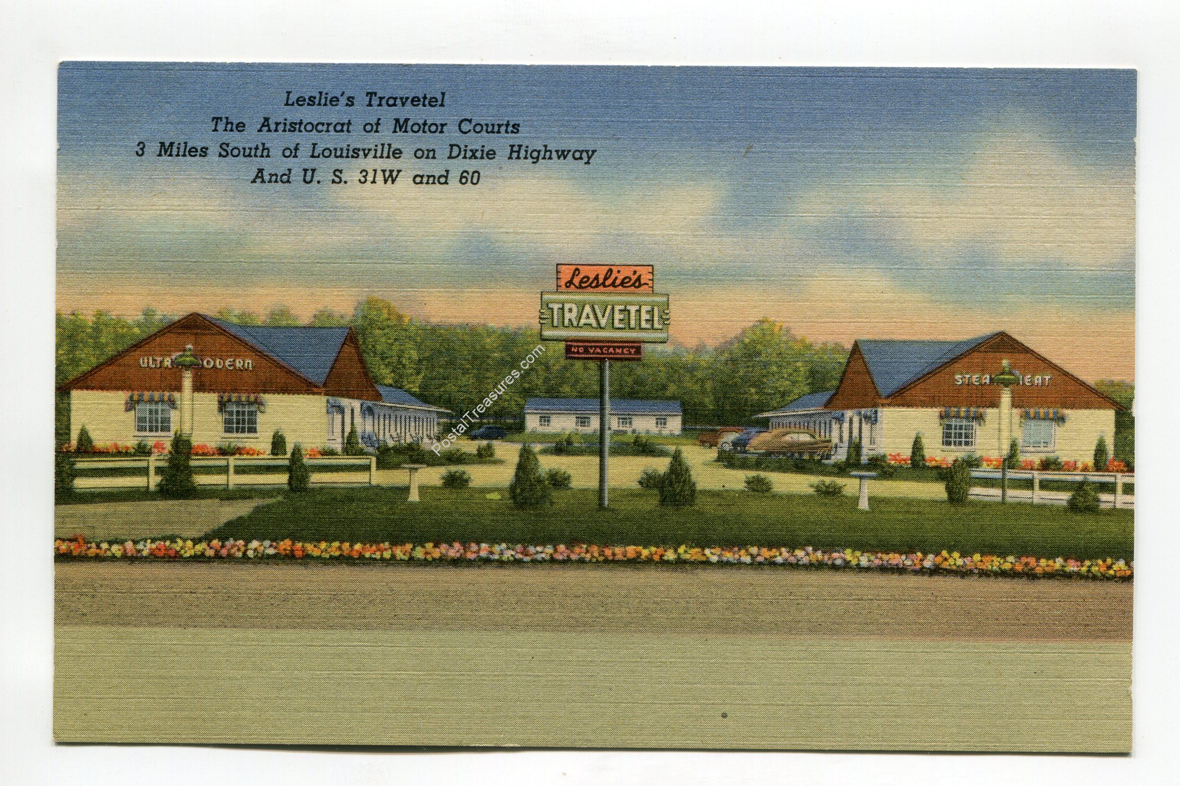 Leslie’s Travetel the Aristocrat of Motor Courts 3 miles south of Louisville on Dixie Highway postcard
