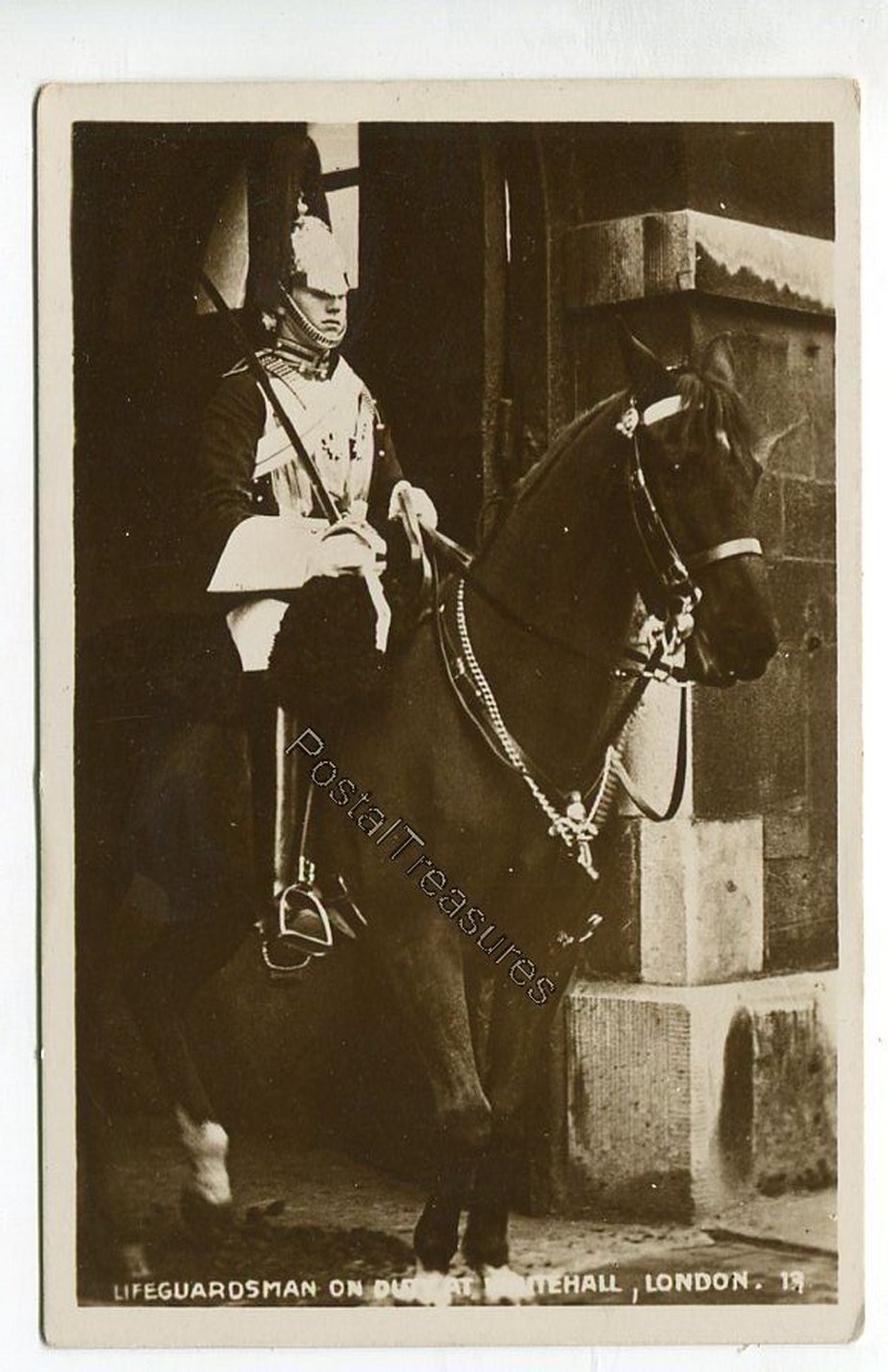 Lifeguardsman on duty at Whitehall London postcard