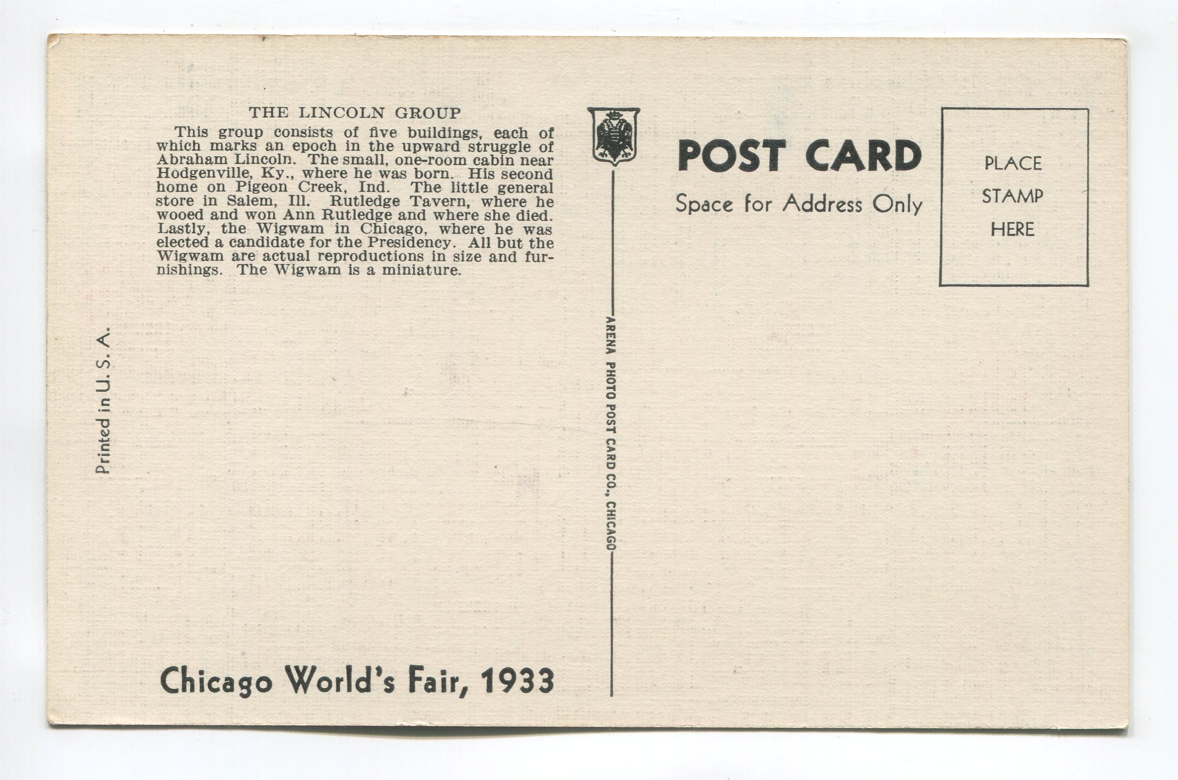 Lincoln Group Chicagos Worlds Fair postcard